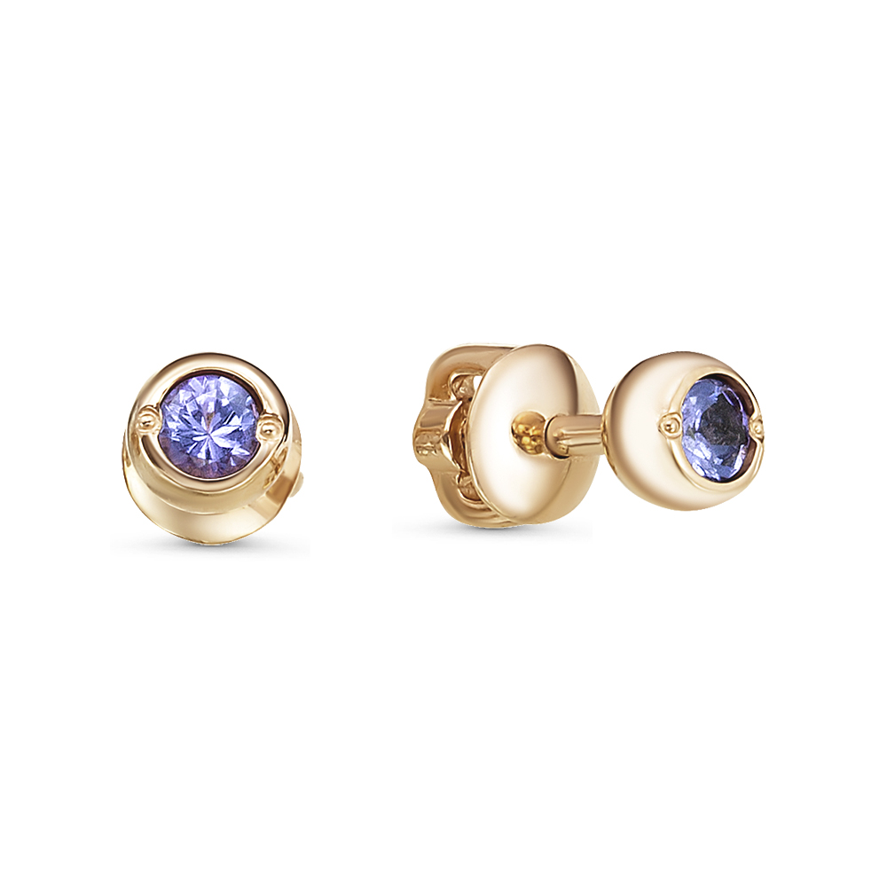 Пуссеты из золота с камнем Лондон топаз