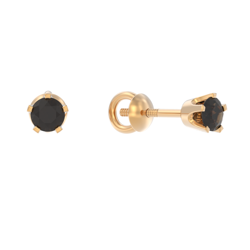 Пуссеты из золота с камнем Раух-топаз