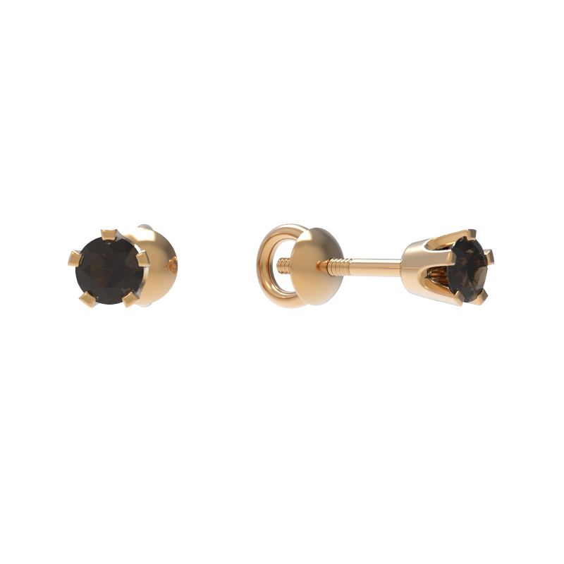 Пуссеты из золота с камнем Раухтопаз