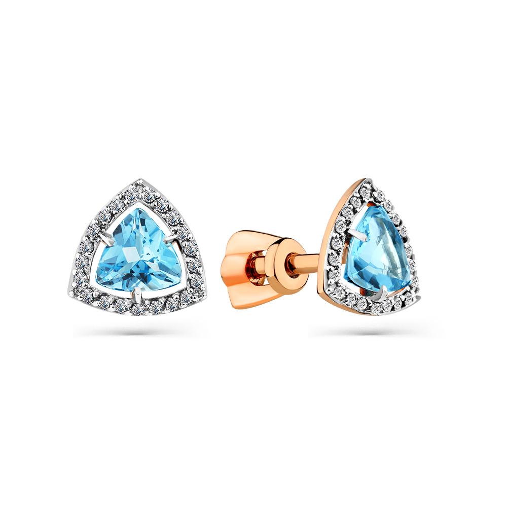 Пуссеты | Топаз SWISS BLUE ,Фианит |