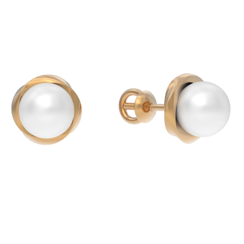 Пуссеты из золота с камнем Жемчуг