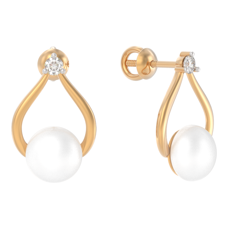 Пуссеты из золота с камнем Жемчуг, Фианит