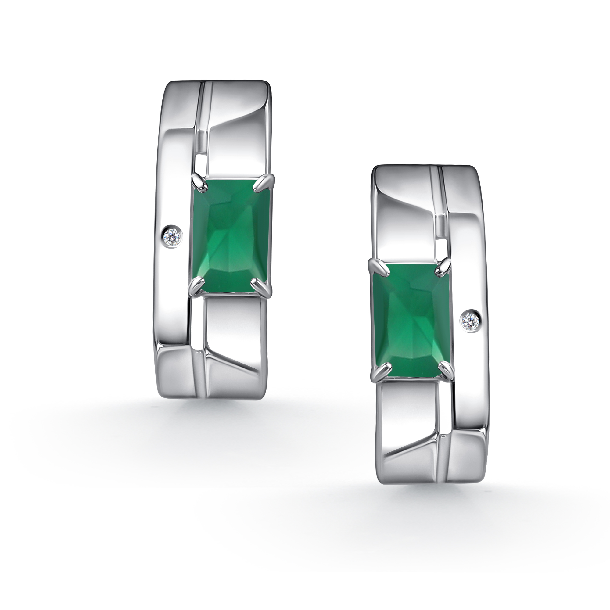 Серьги | 2 Бр кр-17 0,009Ct 2/3А ,Агат Зеленый |