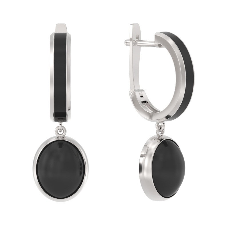 Серьги | Агат Черный ,Эмаль Черный |