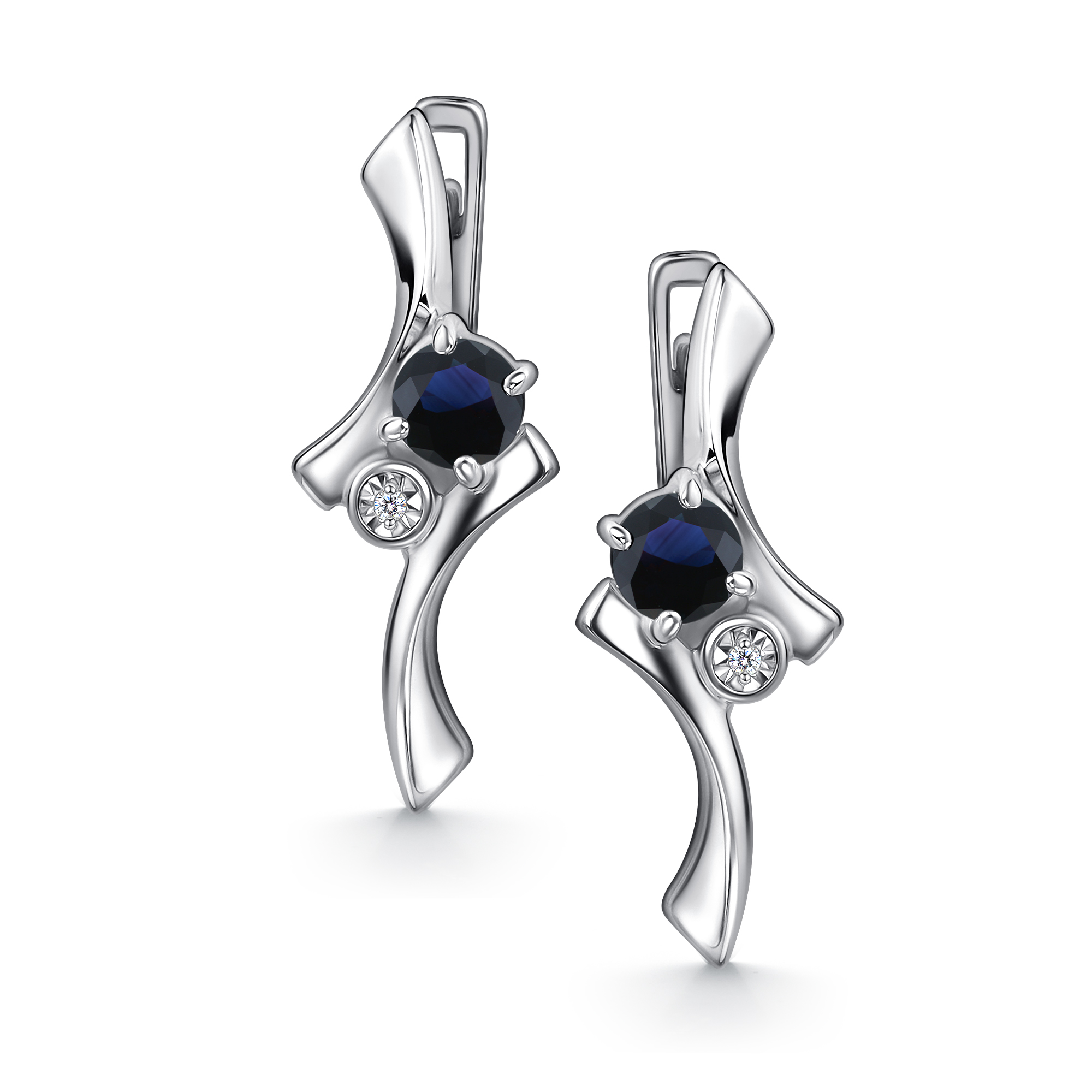 Серьги из серебра с камнем Бриллиант, Сапфир г/т