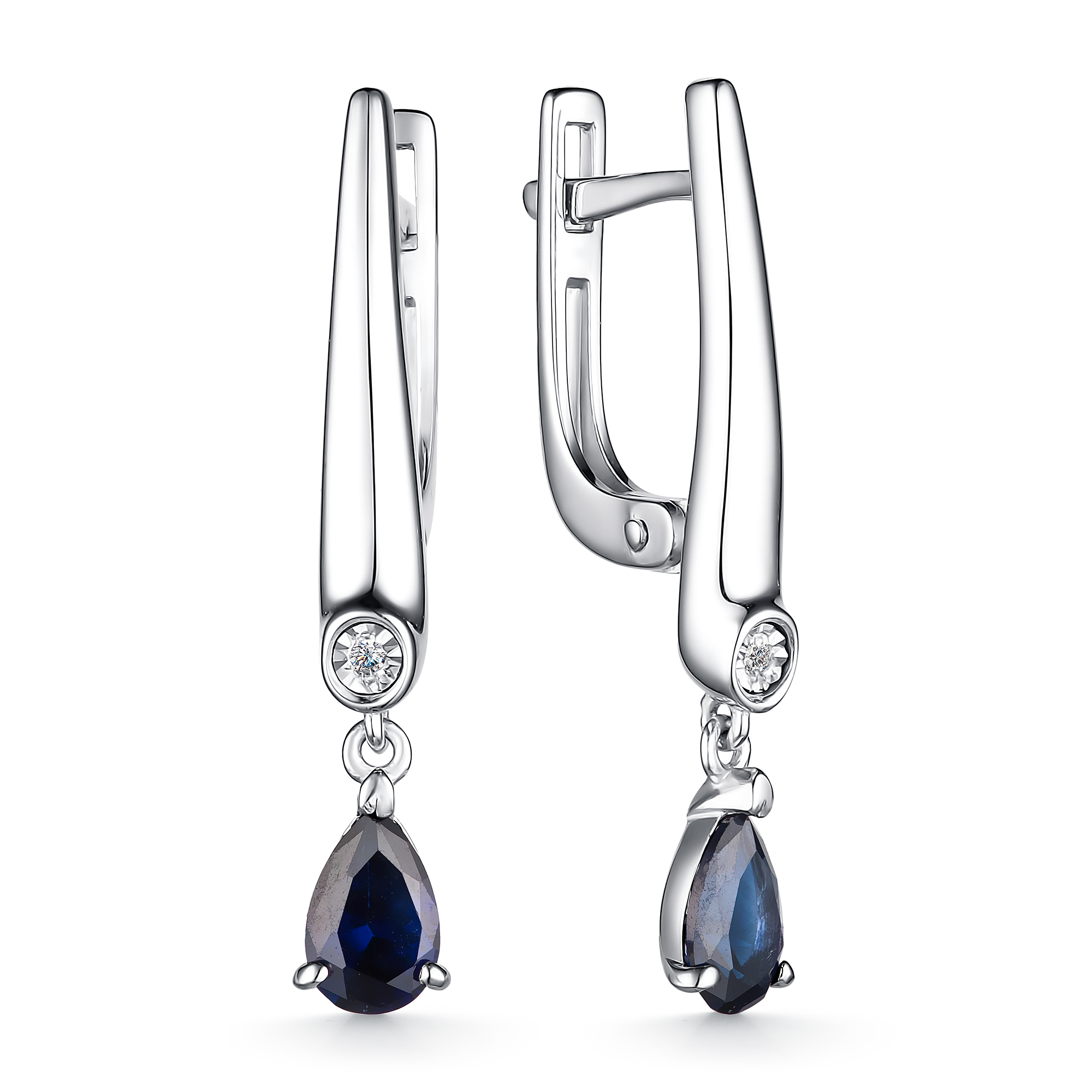 Серьги из серебра с камнем Бриллиант, Сапфир г/т