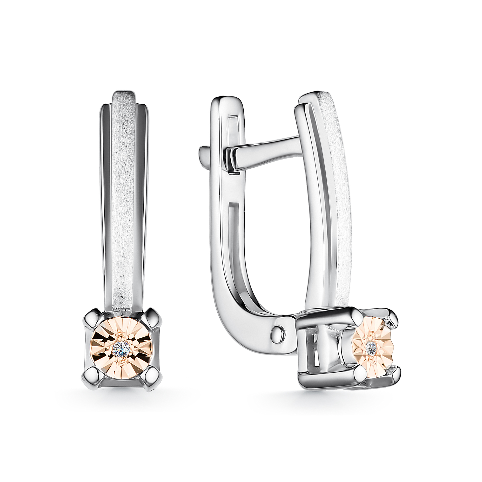 Серьги из серебра с камнем Бриллиант, вставками золота