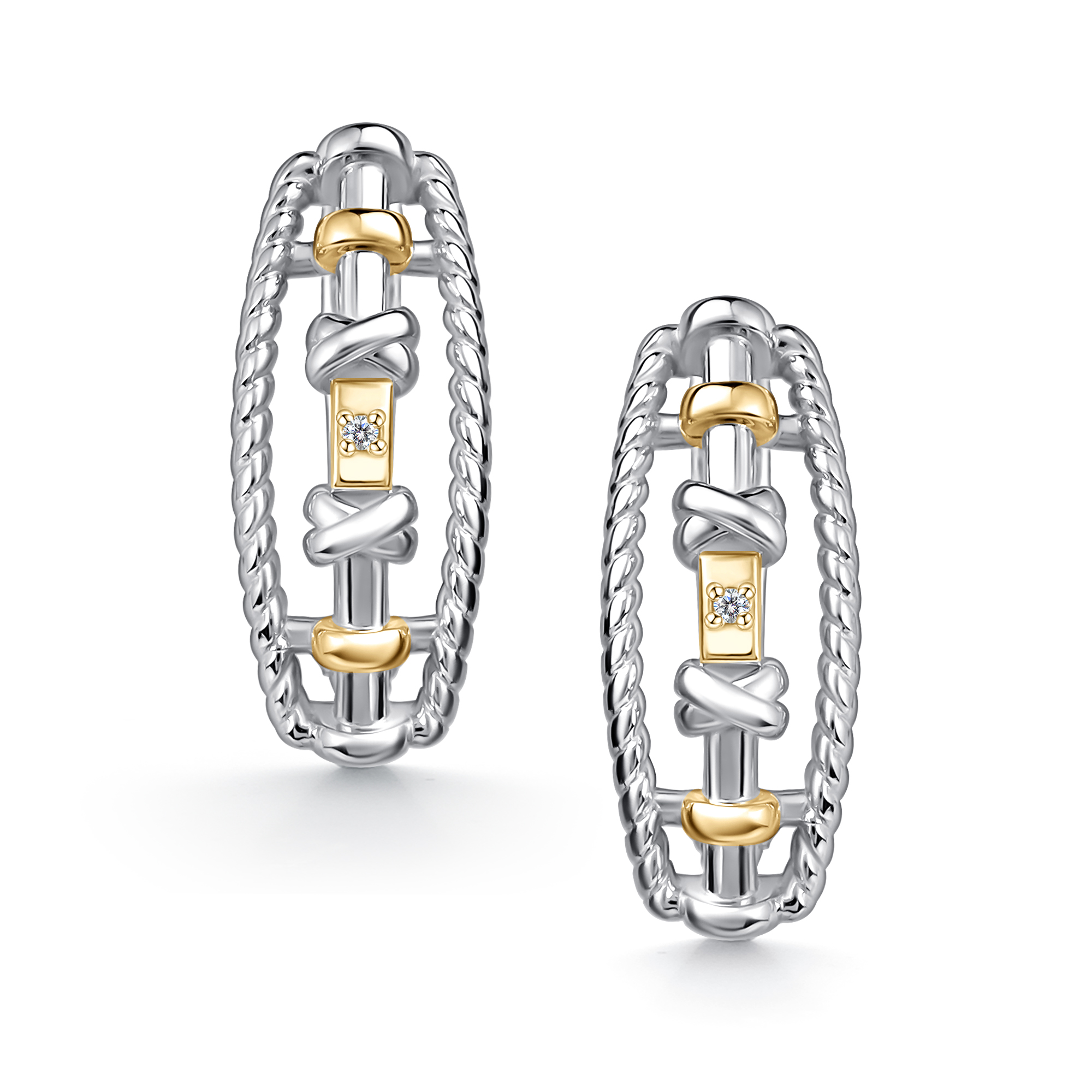 Серьги из серебра с камнем Бриллиант, вставками золота