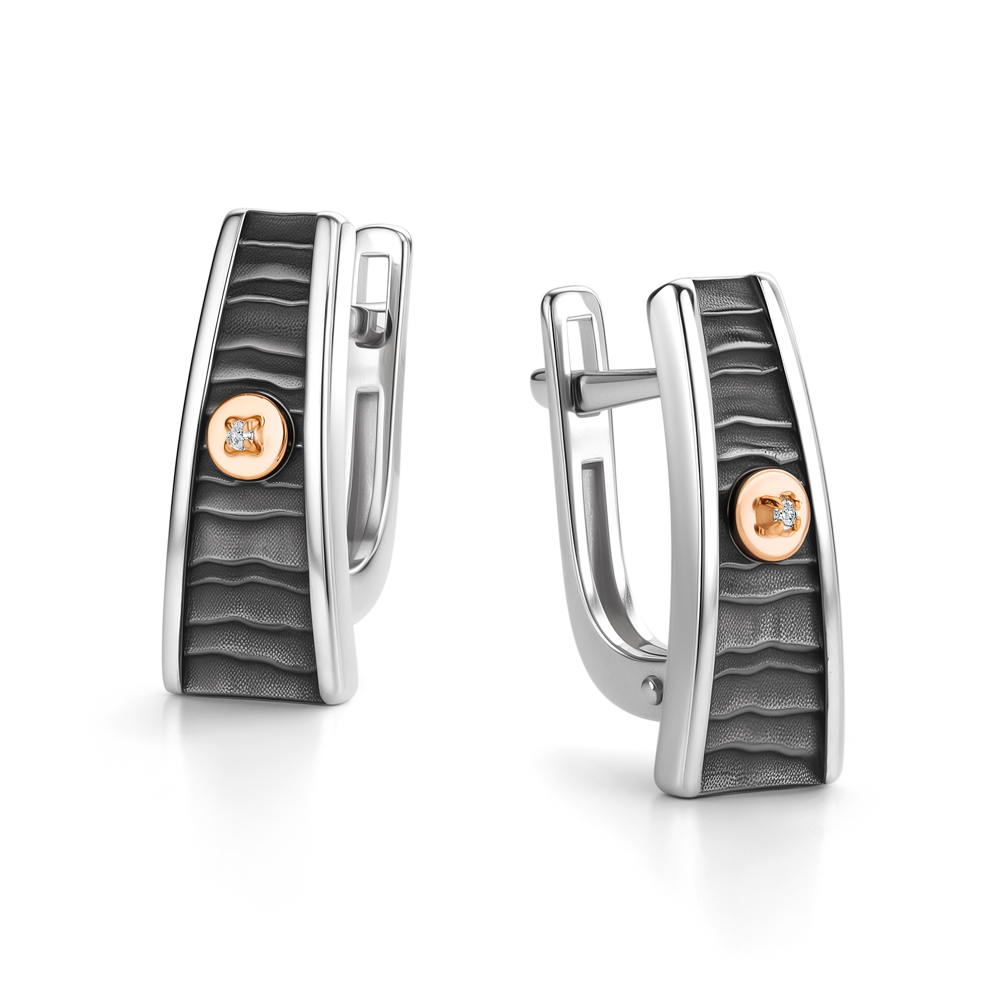 Серьги из серебра с камнем Бриллиант, вставками золота