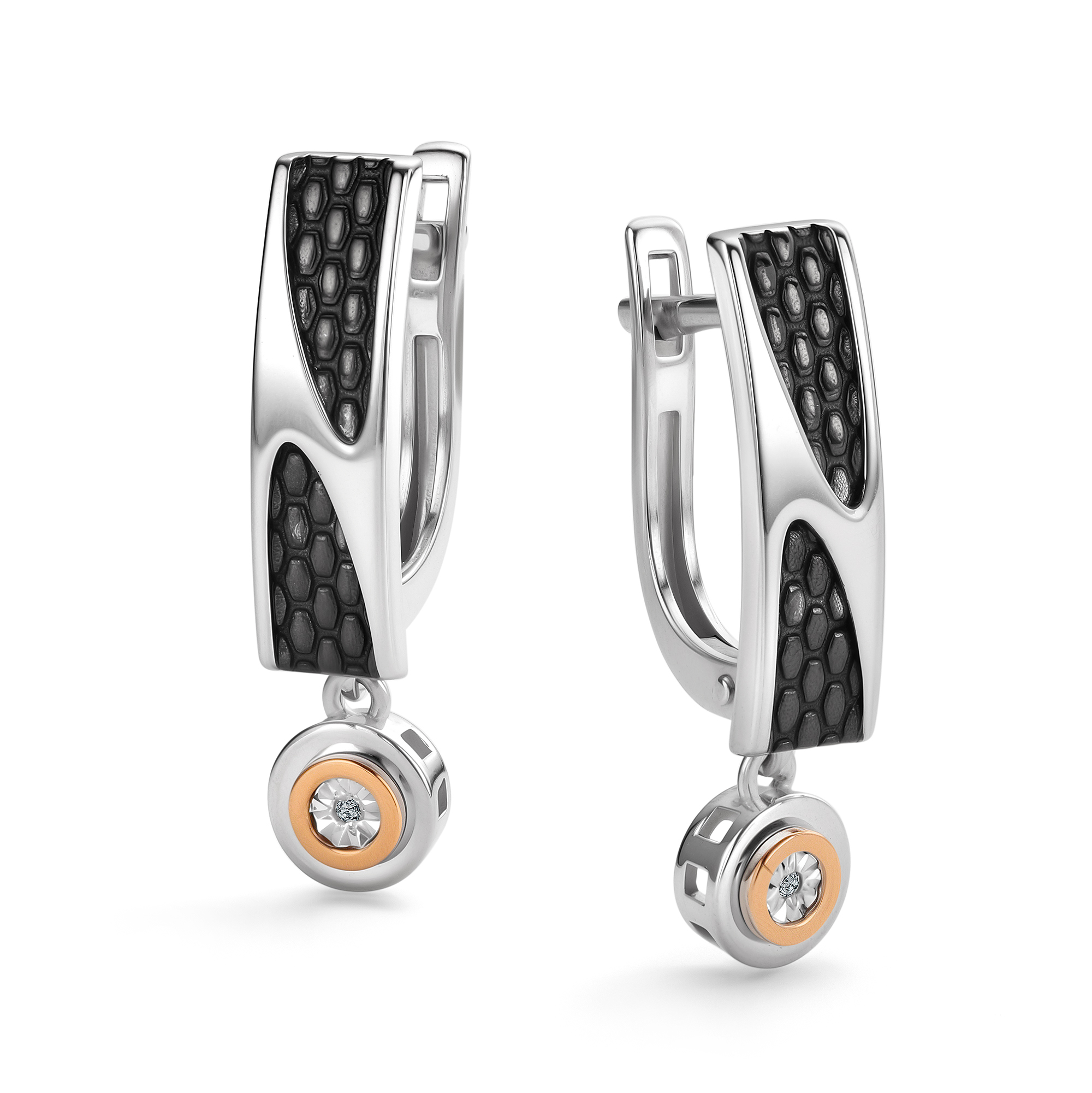 Серьги из серебра с камнем Бриллиант, вставками золота