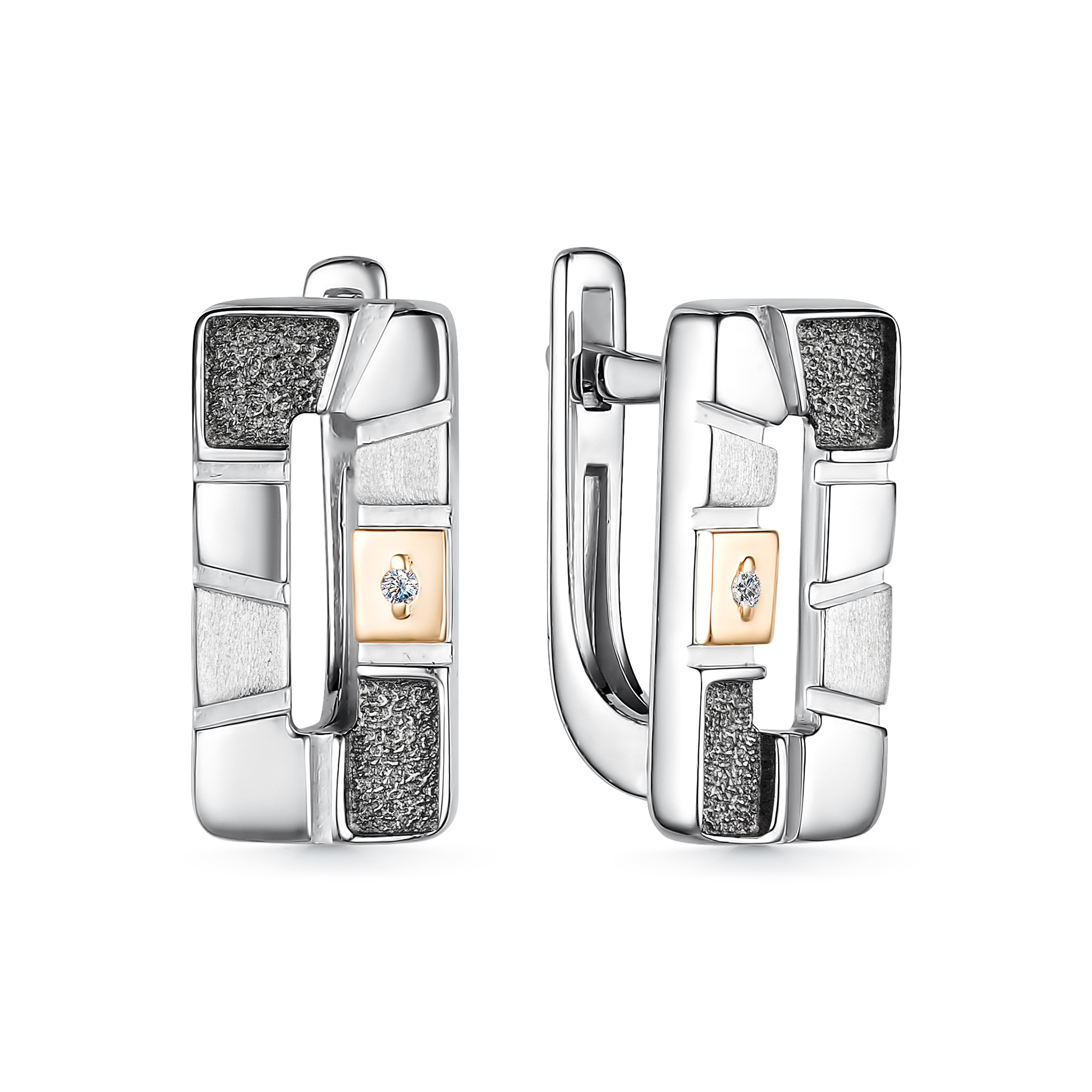 Серьги из серебра с камнем Бриллиант, вставками золота