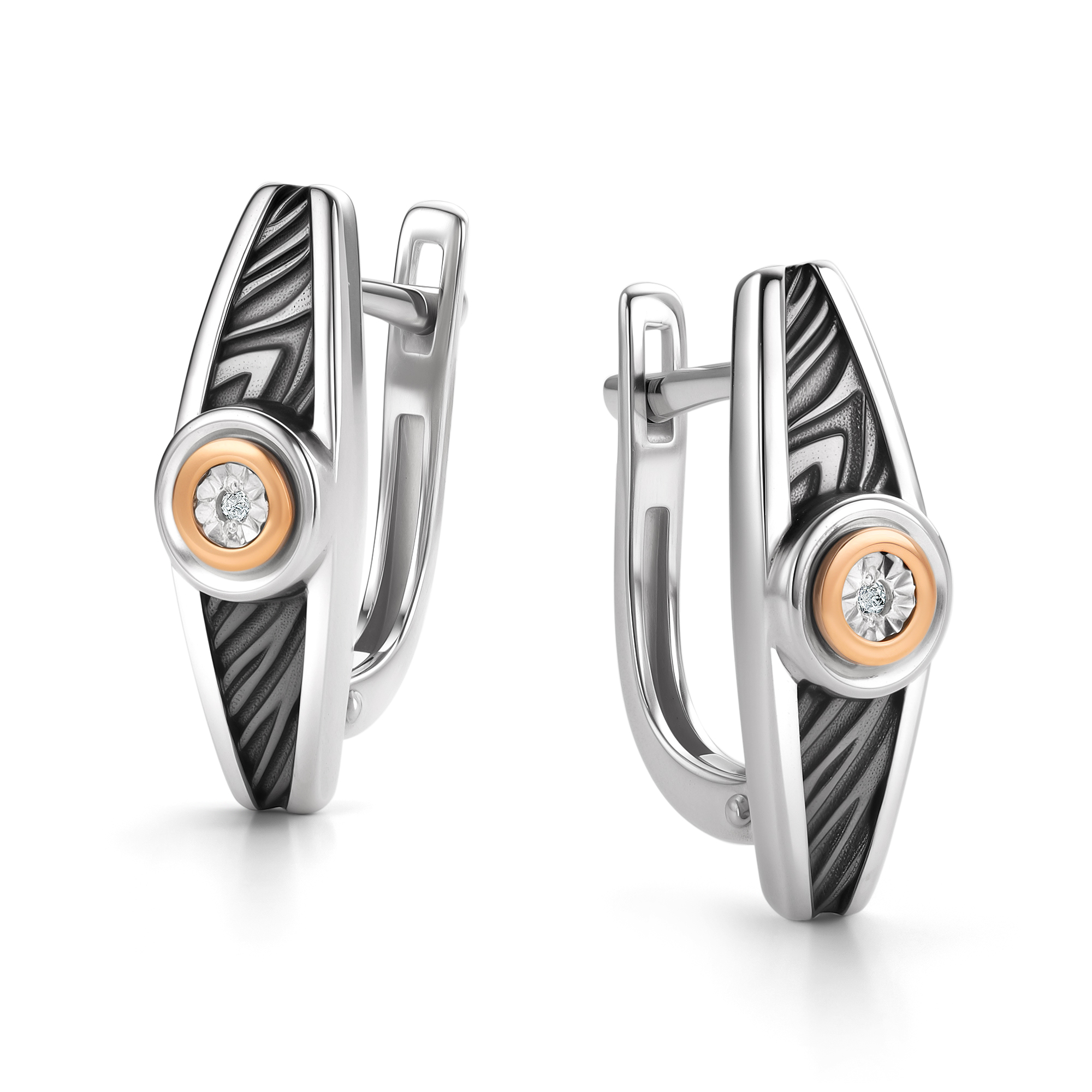 Серьги из серебра с камнем Бриллиант, вставками золота