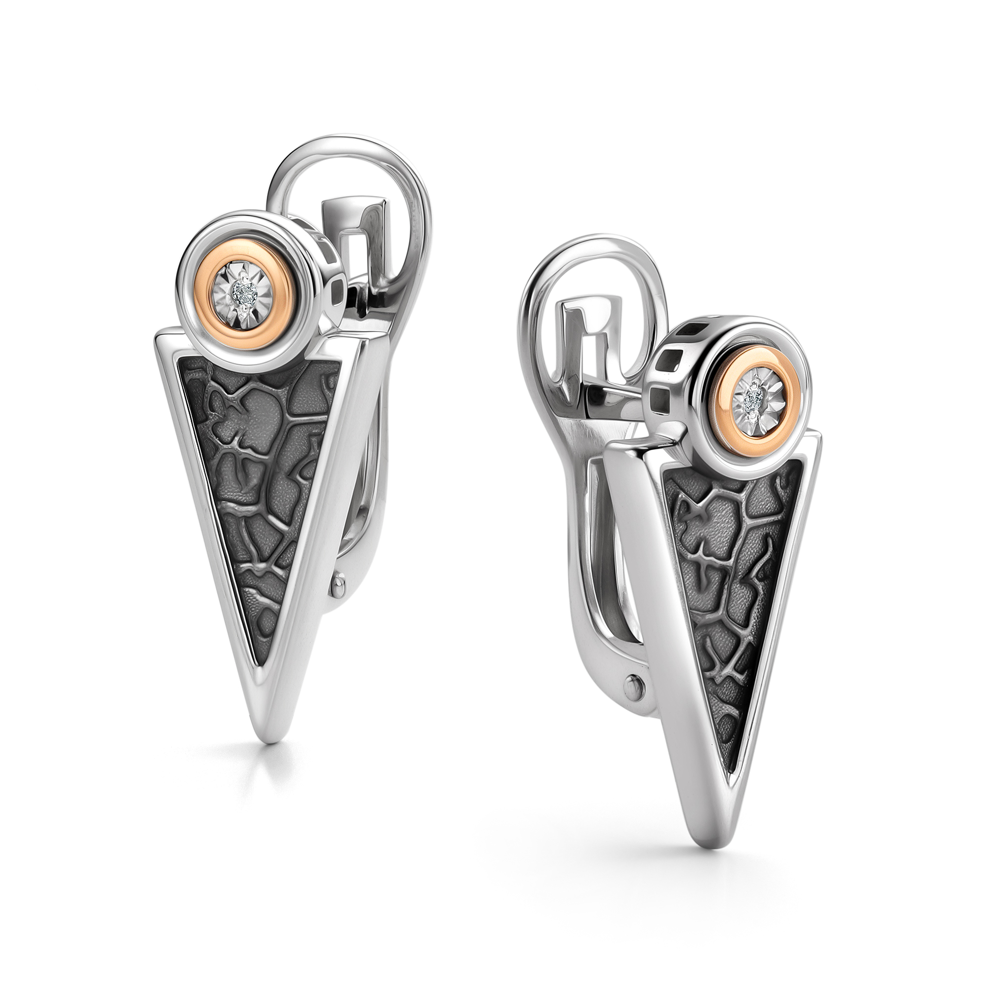 Серьги из серебра с камнем Бриллиант, вставками золота