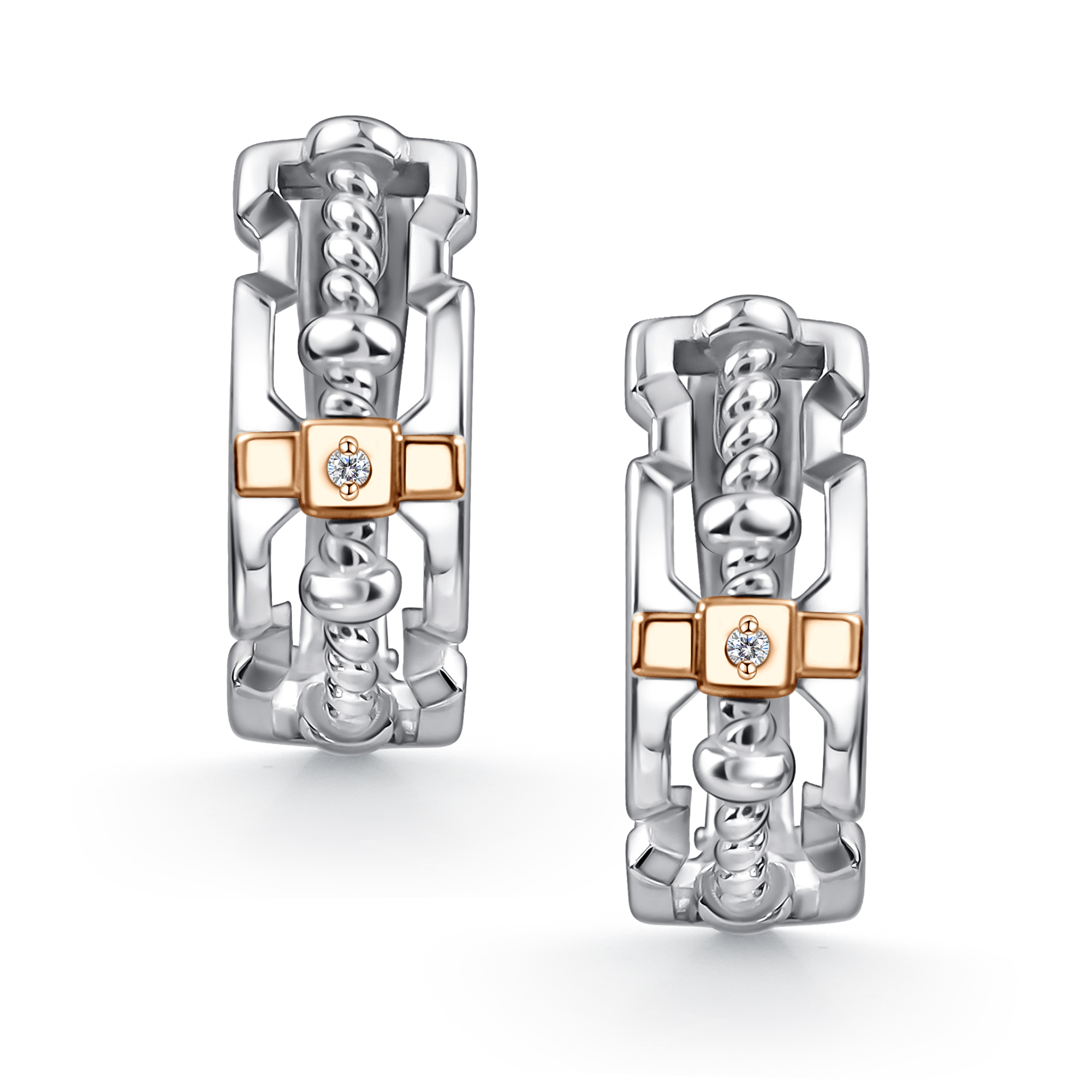 Серьги из серебра с камнем Бриллиант, вставками золота