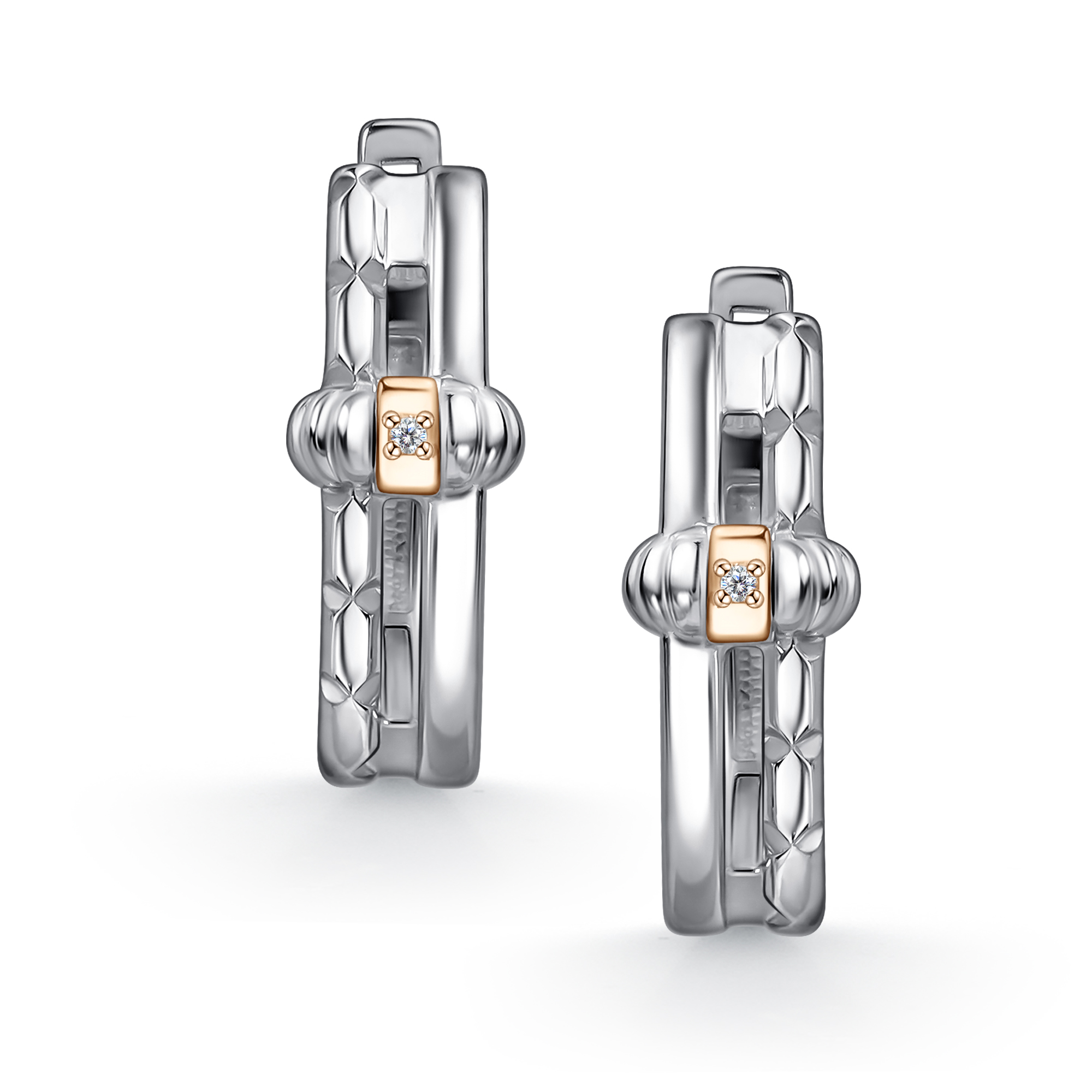 Серьги из серебра с камнем Бриллиант, вставками золота