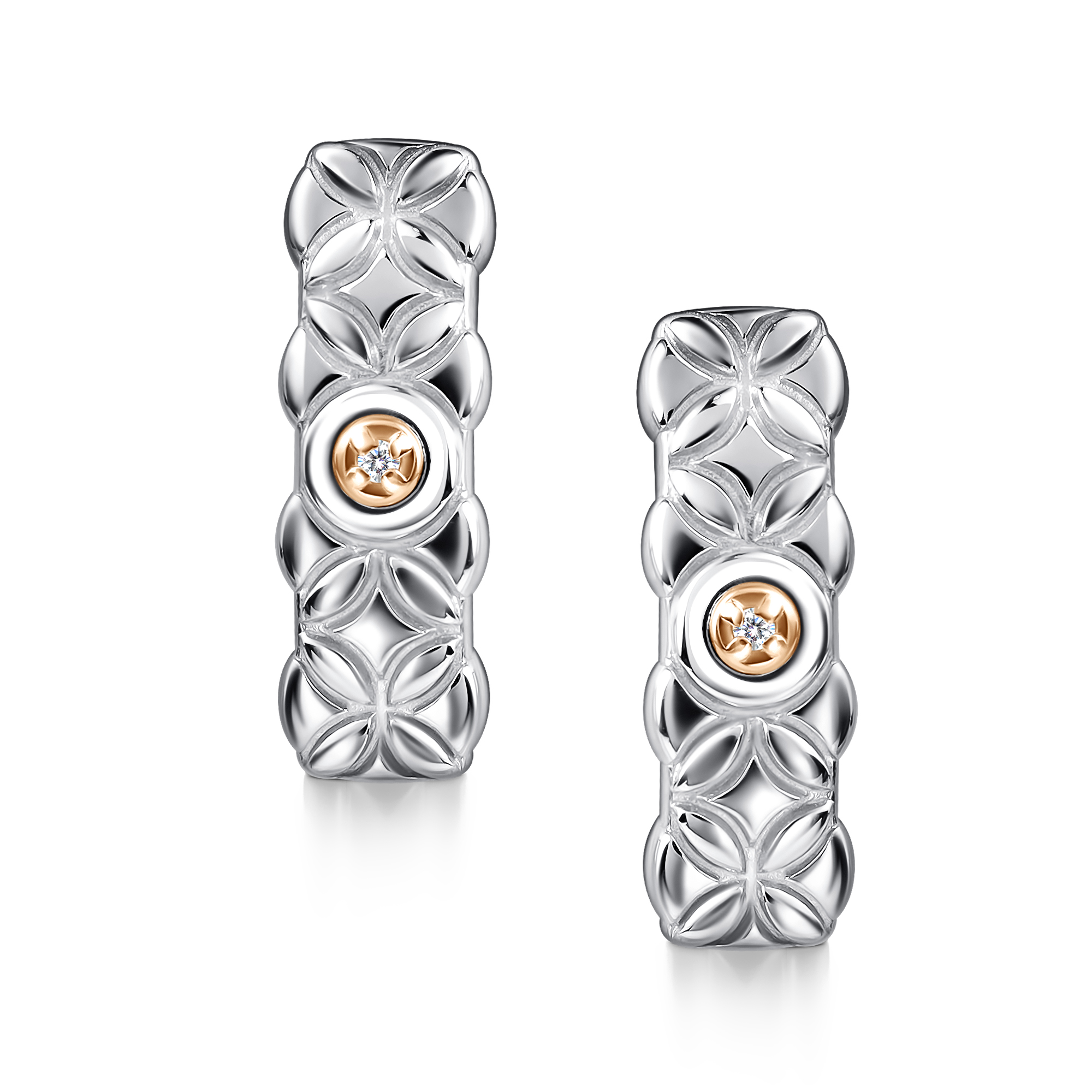 Серьги из серебра с камнем Бриллиант, вставками золота