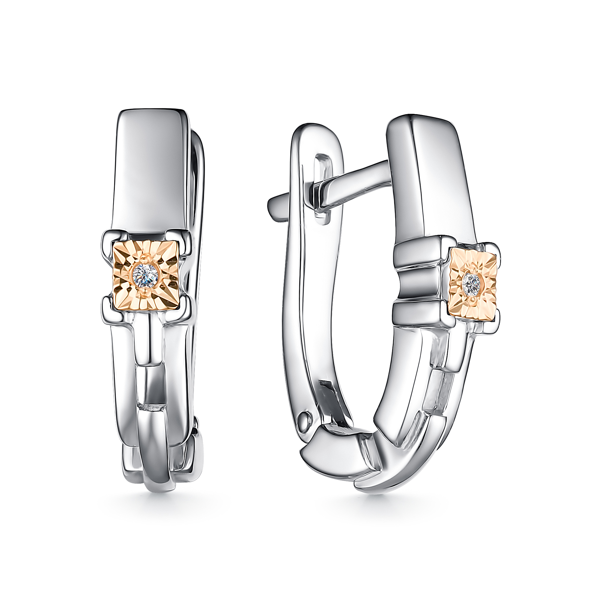Серьги из серебра с камнем Бриллиант, вставками золота