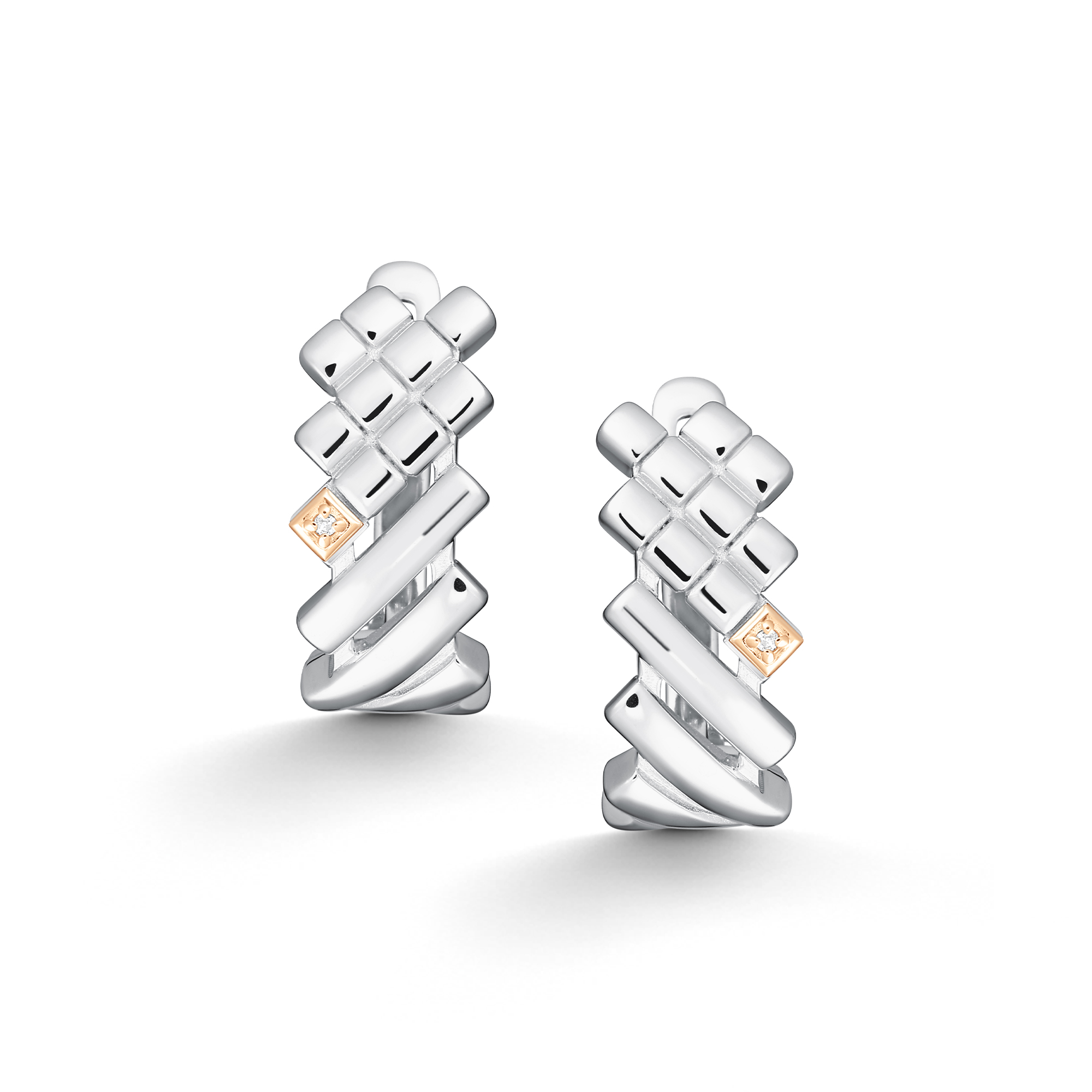 Серьги из серебра с камнем Бриллиант, вставками золота