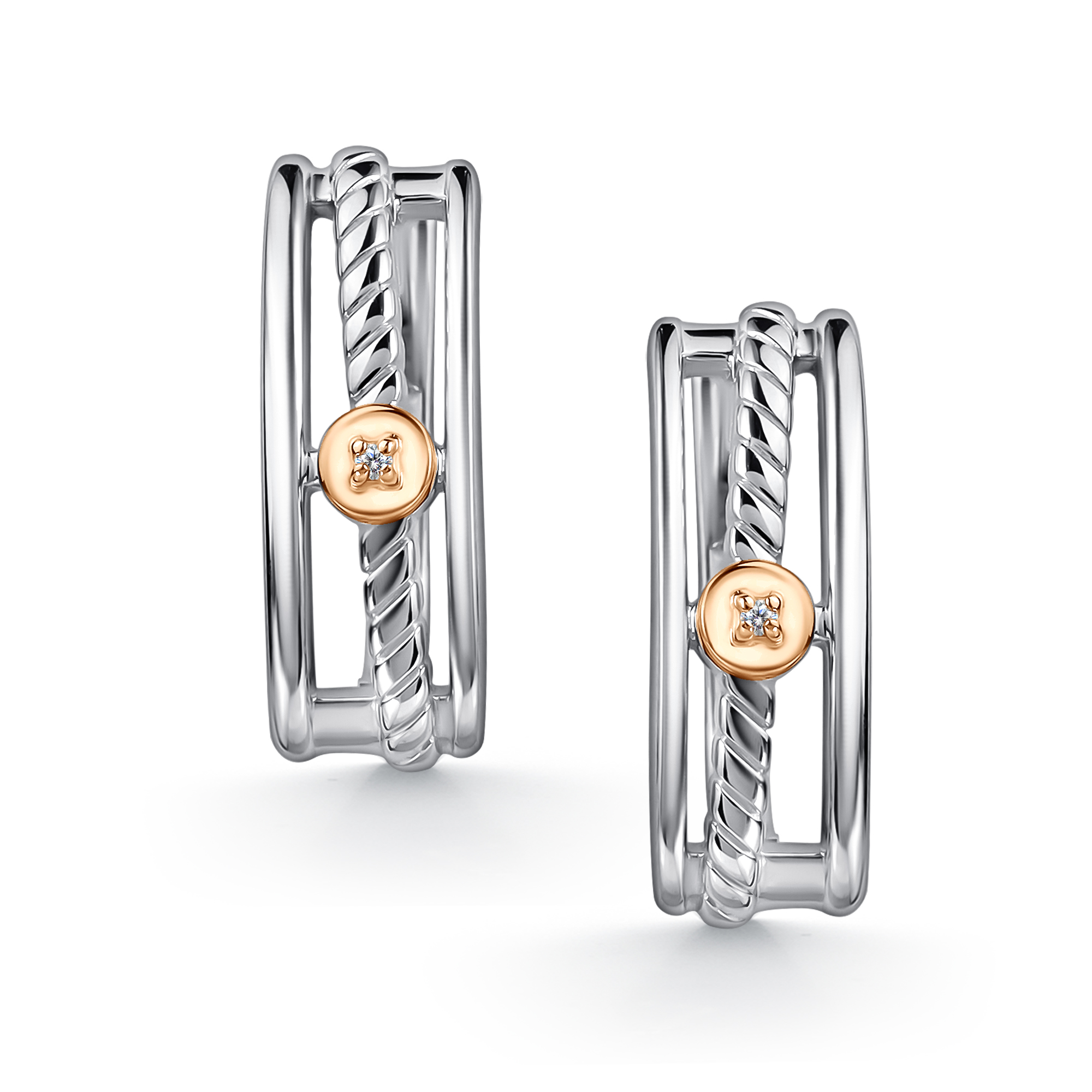Серьги из серебра с камнем Бриллиант, вставками золота