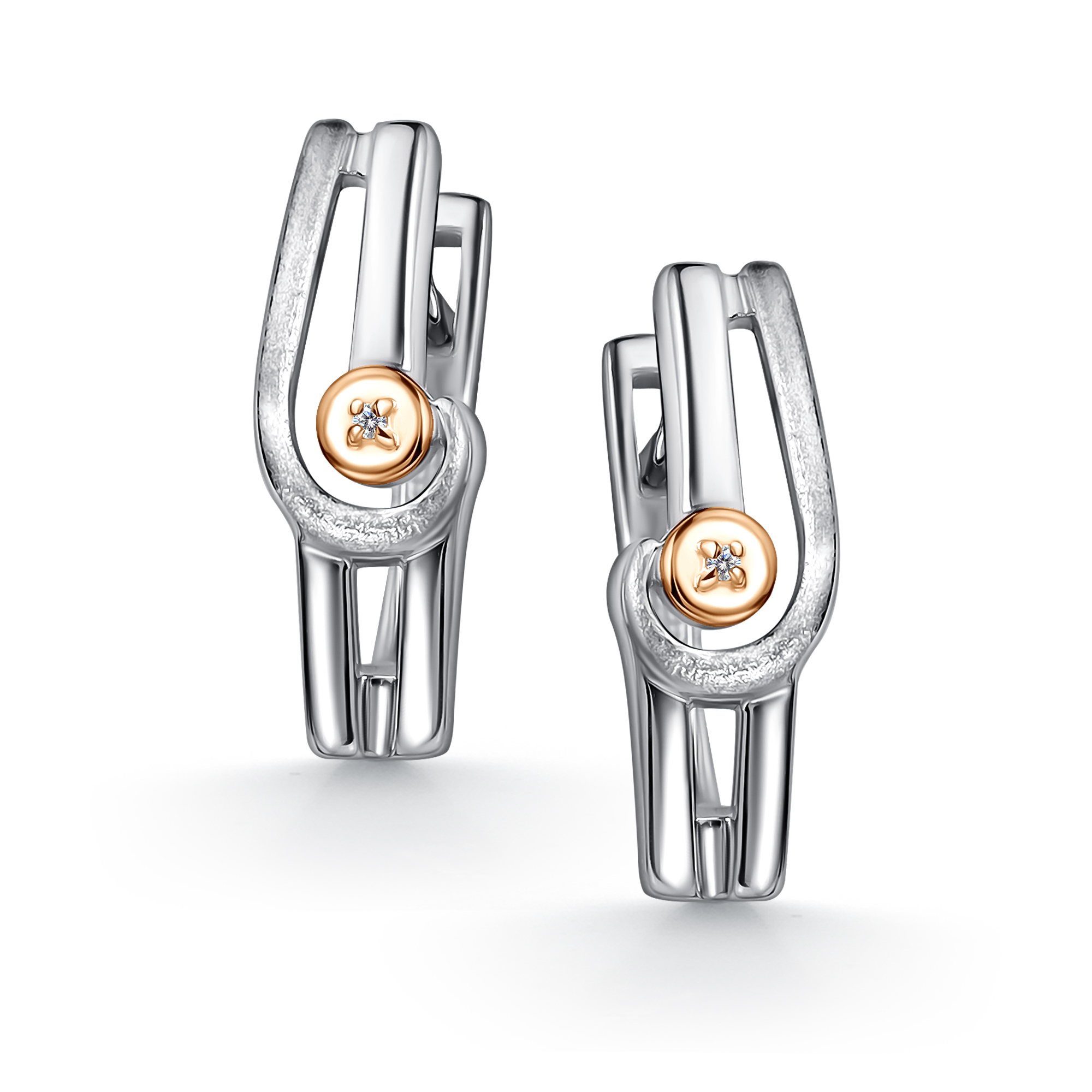 Серьги из серебра с камнем Бриллиант, вставками золота