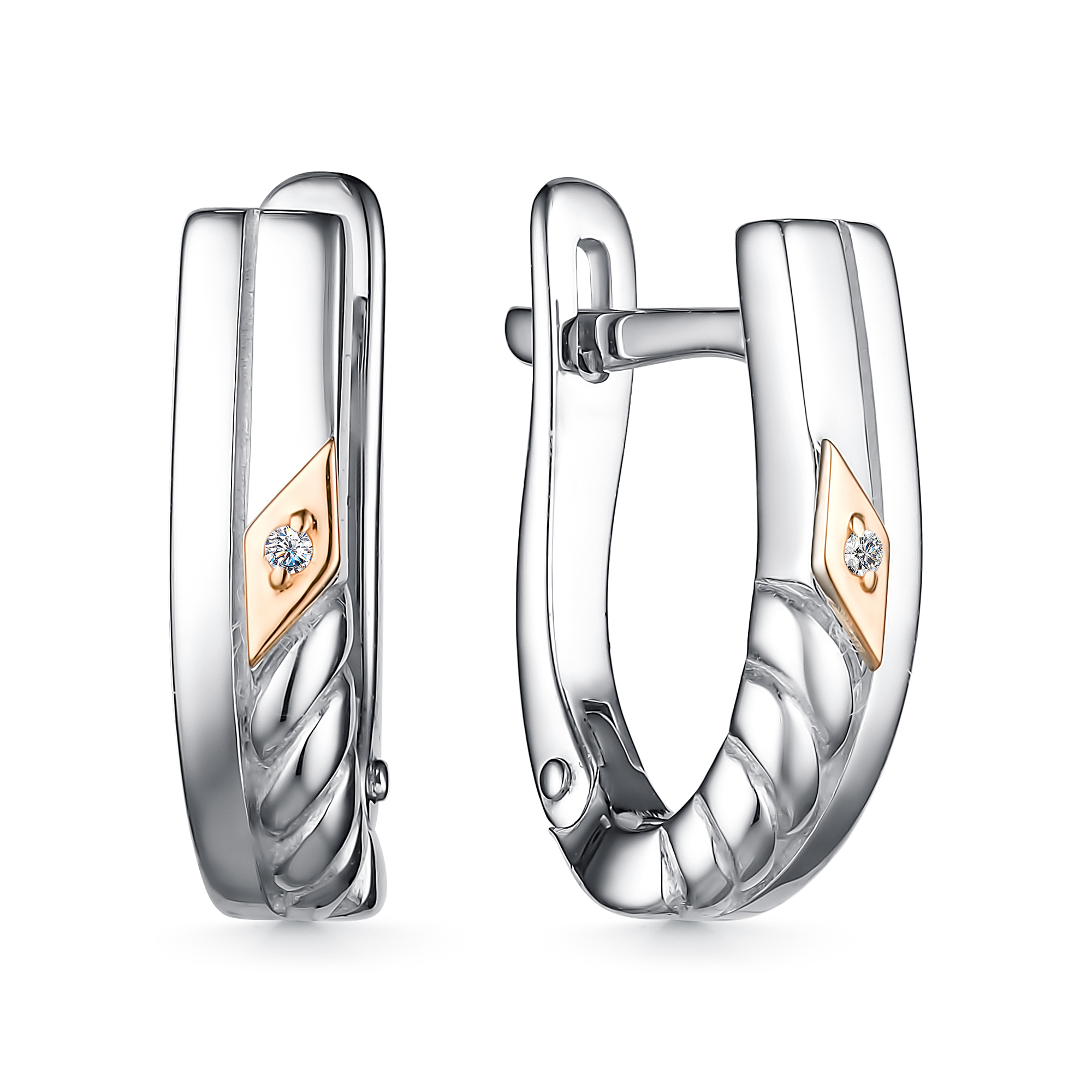Серьги из серебра с камнем Бриллиант, вставками золота
