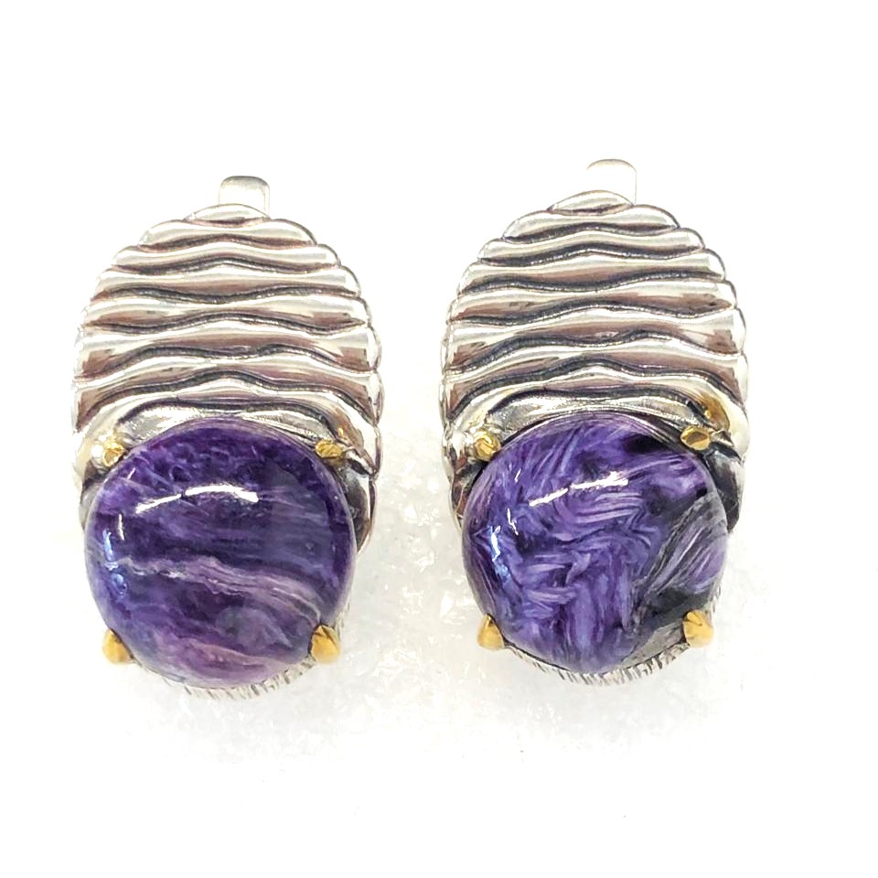 Серьги из серебра с камнем Чароит