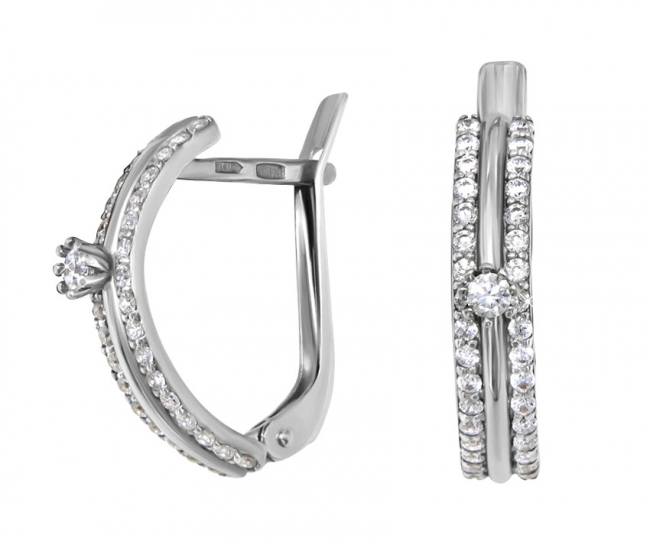 Серьги из серебра с камнем Фианит