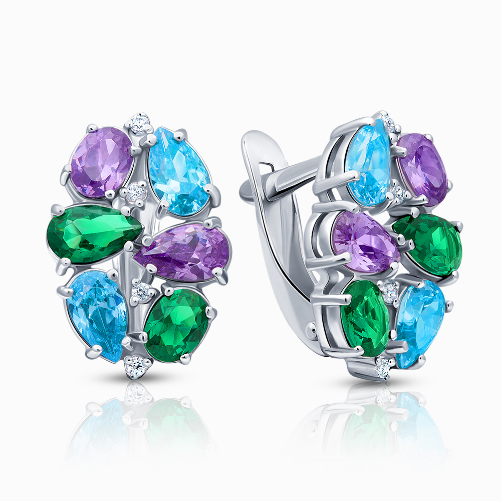 Серьги из серебра с камнем Фианит