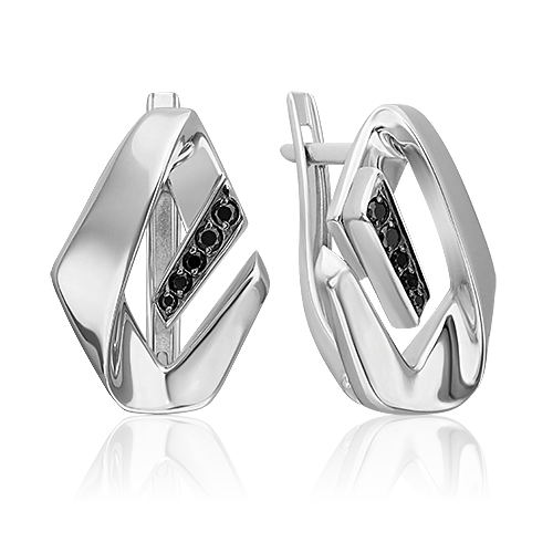 Эффектные и стильные серьги из серебра 925 пробы с чёрными фианитами из коллекции PLATINA NIGHT от ювелирного бренда PLATINA. Дизайн украшения объёмный, в стиле геометрия. Серьги инкрустированы чёрынми фианитами и покрыты родием. Закрепка камней и родирование выполнены вручную. Серьги подойдут для повседневного гардероба, а также для коктейльных и неформальных мероприятий и встреч с друзьями.