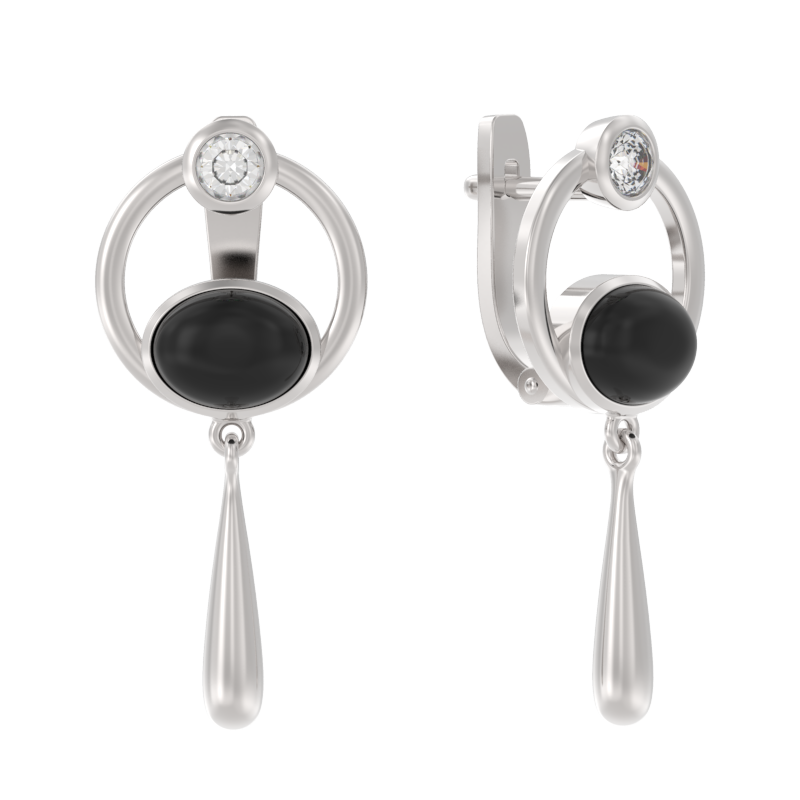 Серьги | Агат Черный ,Фианит |