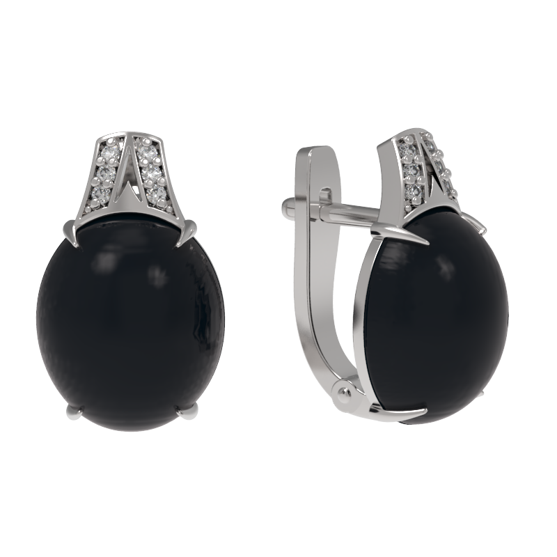 Серьги | Агат Черный ,Фианит |