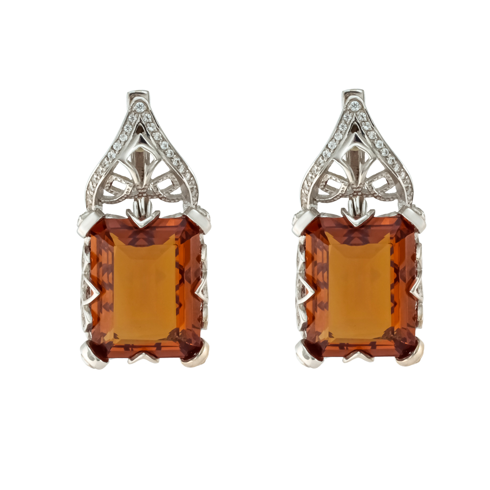 Серьги из серебра с камнем Фианит, Кварц