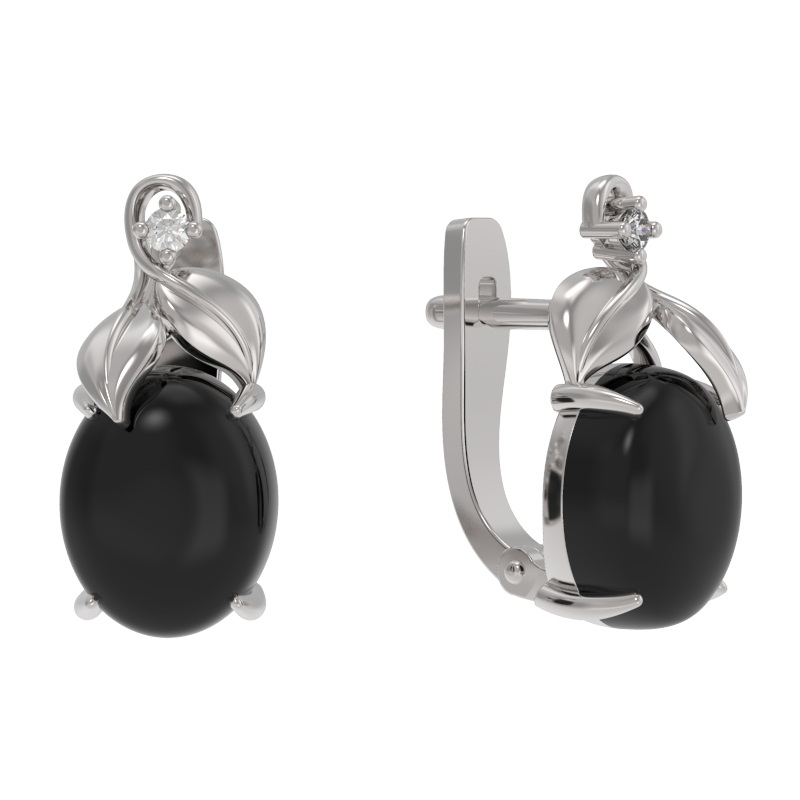 Серьги из серебра с камнем Фианит, Оникс