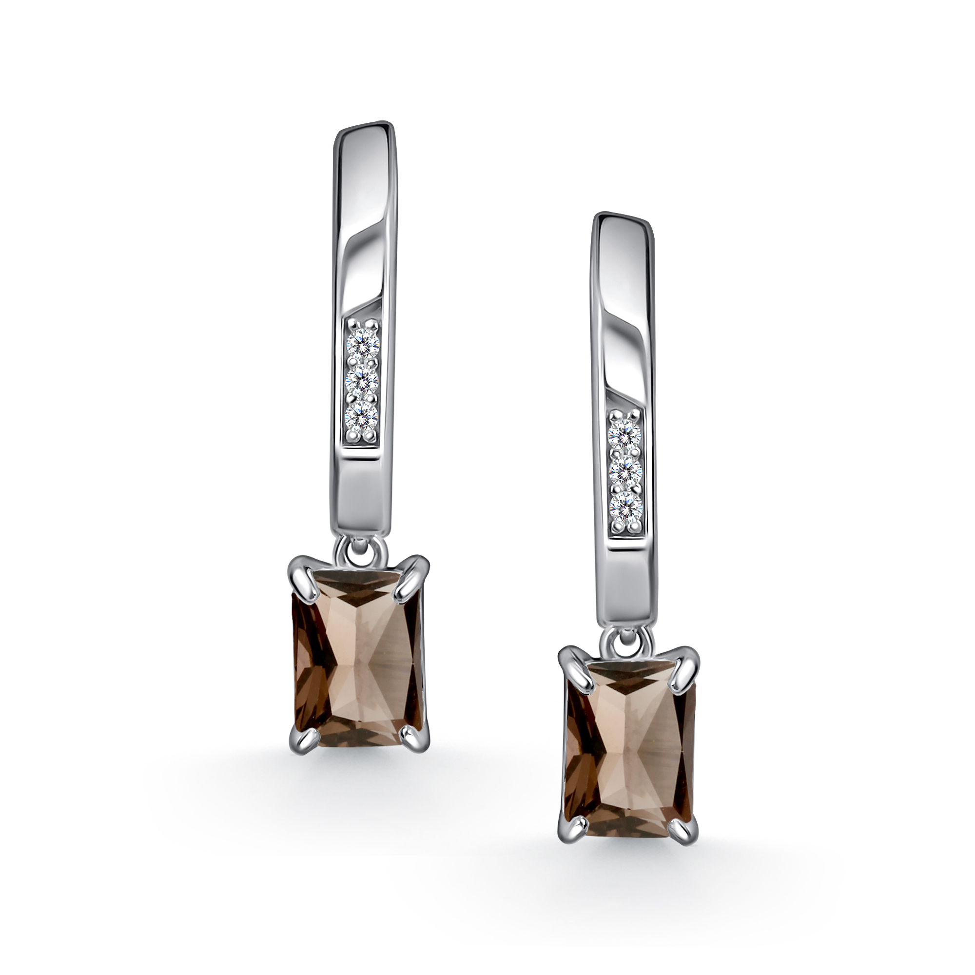 Серьги из серебра с камнем Фианит, Раух-топаз
