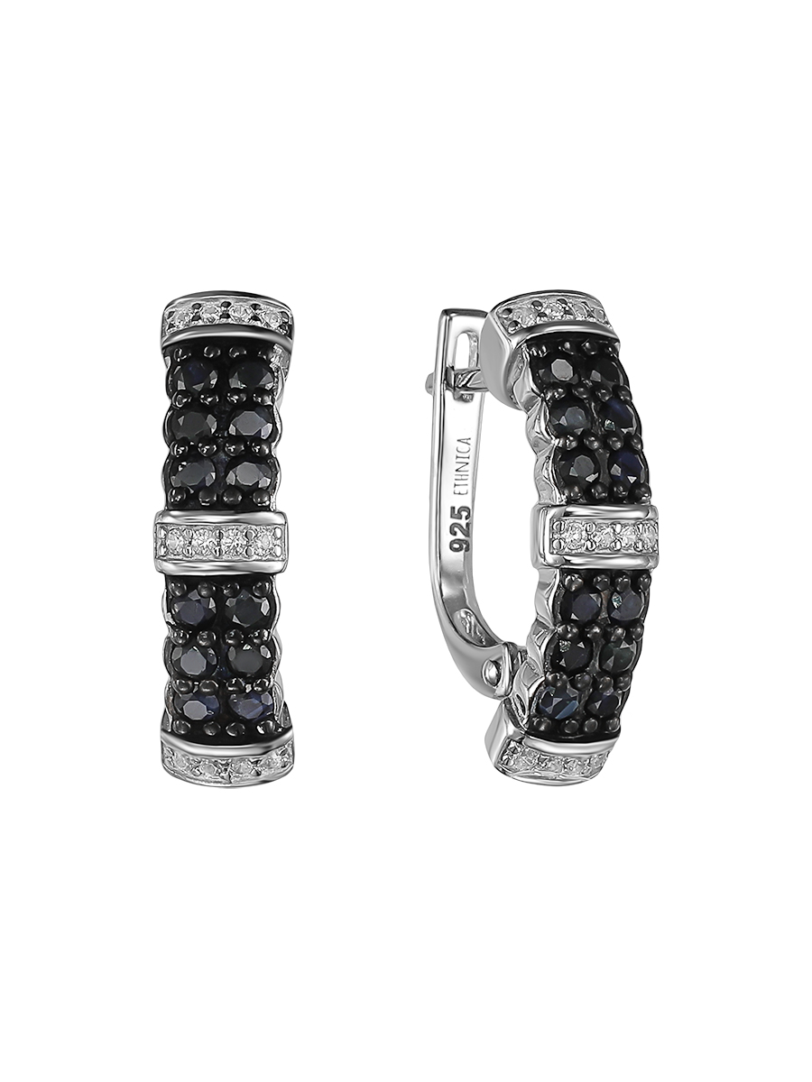Серьги из серебра с камнем Фианит, Сапфир