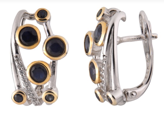 Серьги из серебра с камнем Фианит, Сапфир