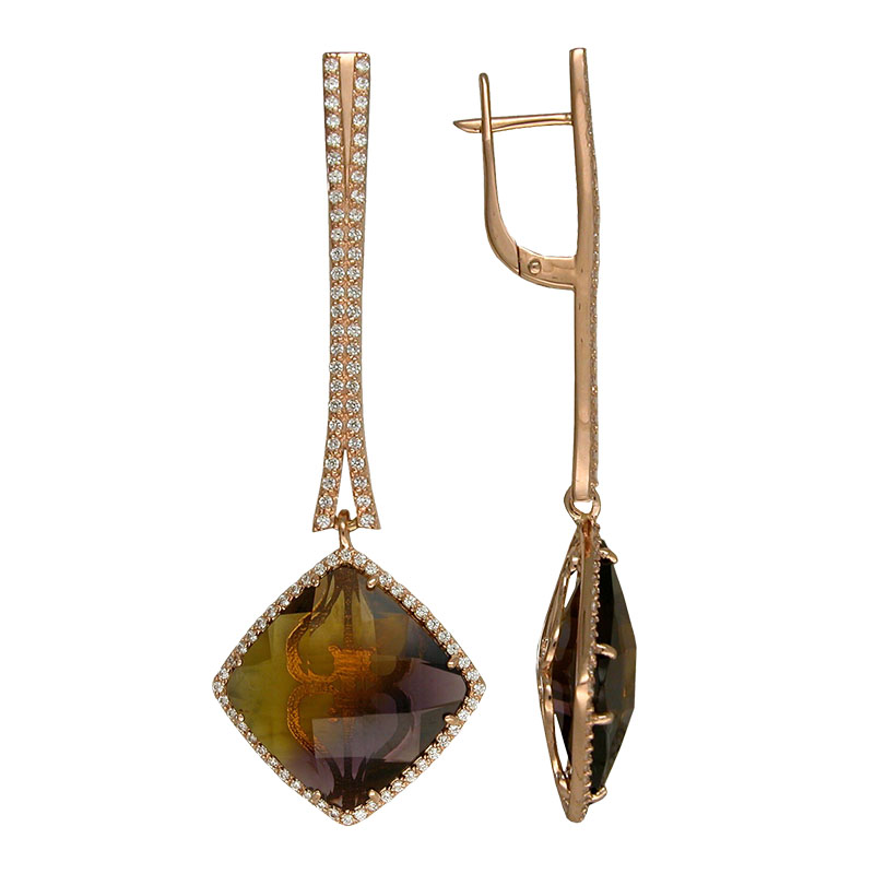 Серьги, с подвесным элементом | Ситалл Лондон топаз ,Фианит |