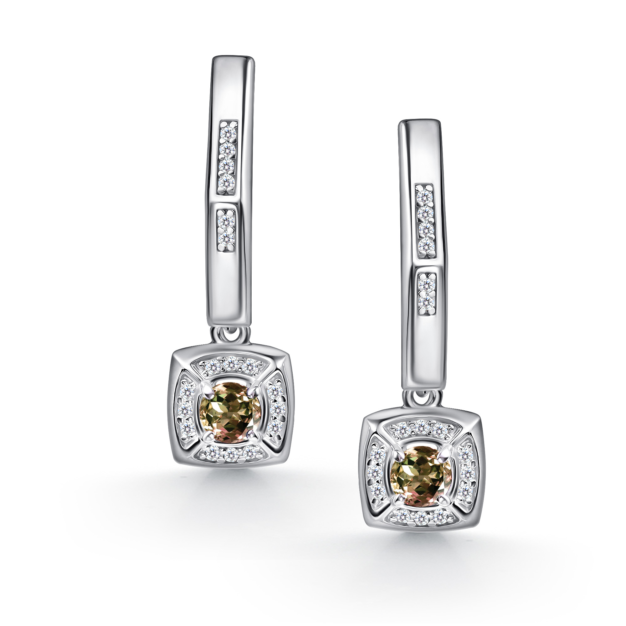 Серьги из серебра с камнем Фианит, Султанит и.в.