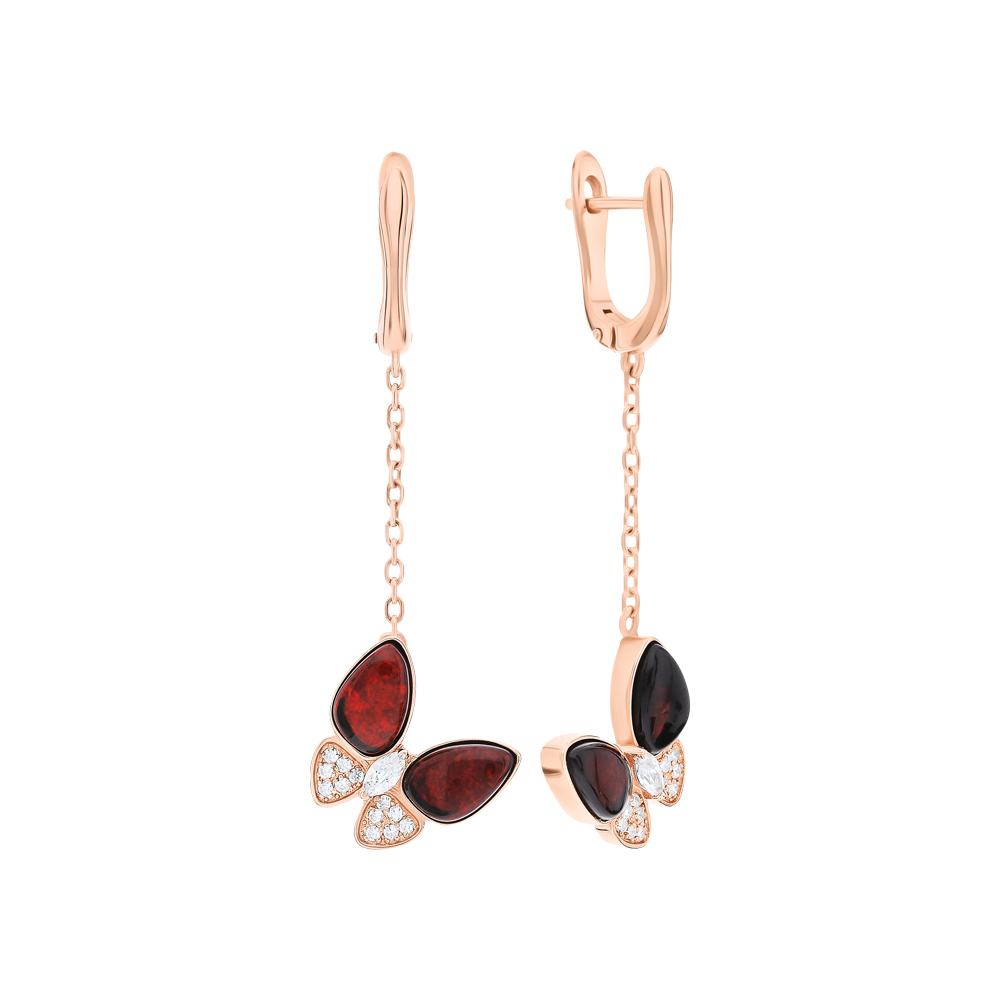 Серьги, Позолота, с подвесным элементом | Янтарь Коньячный ,Фианит |