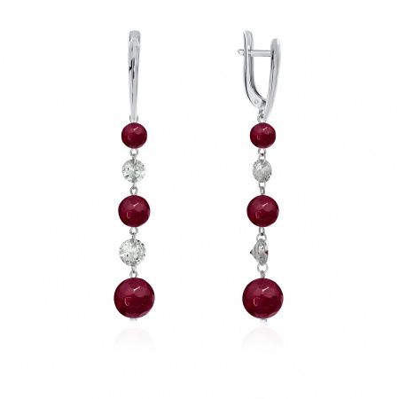 Серьги из серебра с камнем Фианит, Жадеит