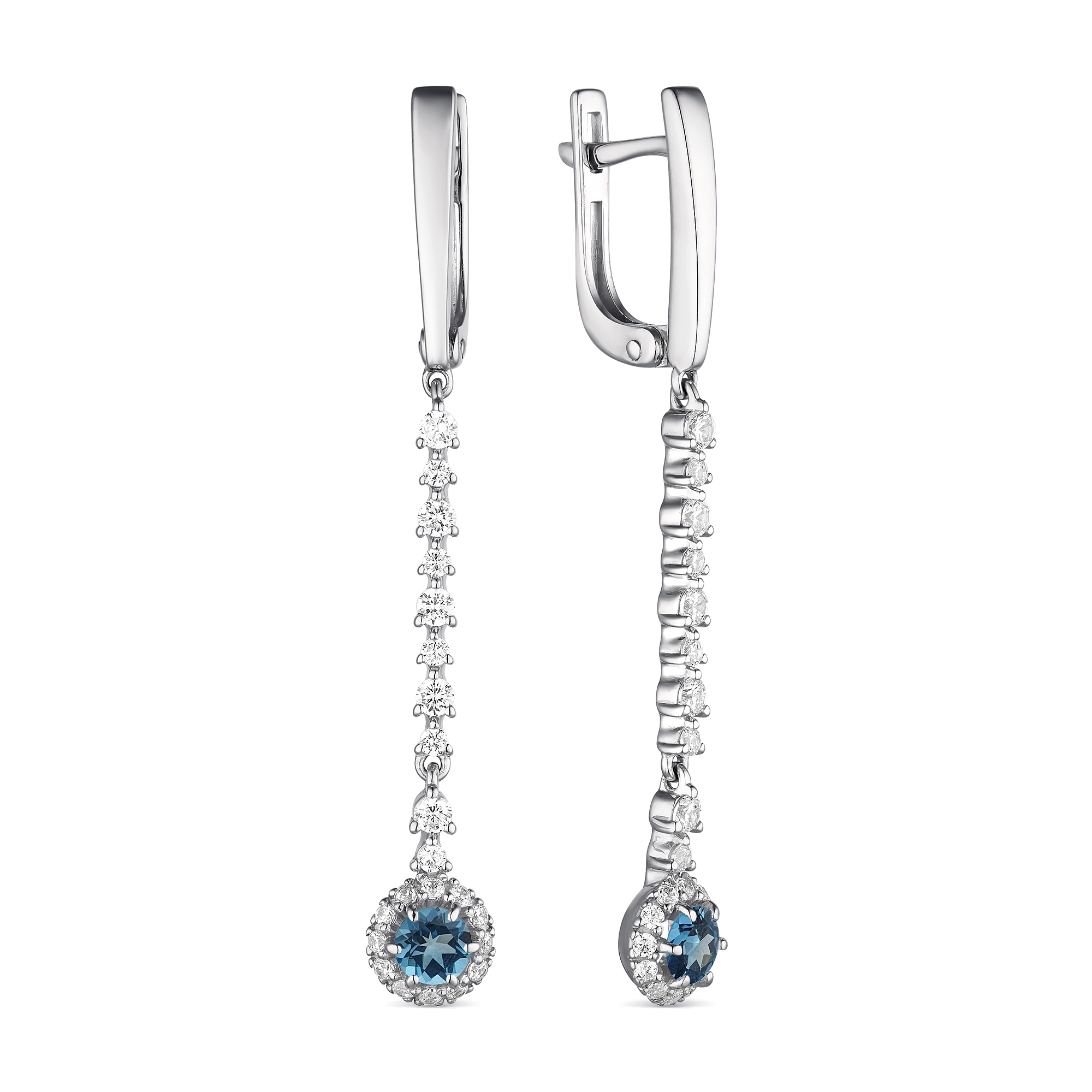 Серьги из серебра с камнем Лондон топаз, Фианит