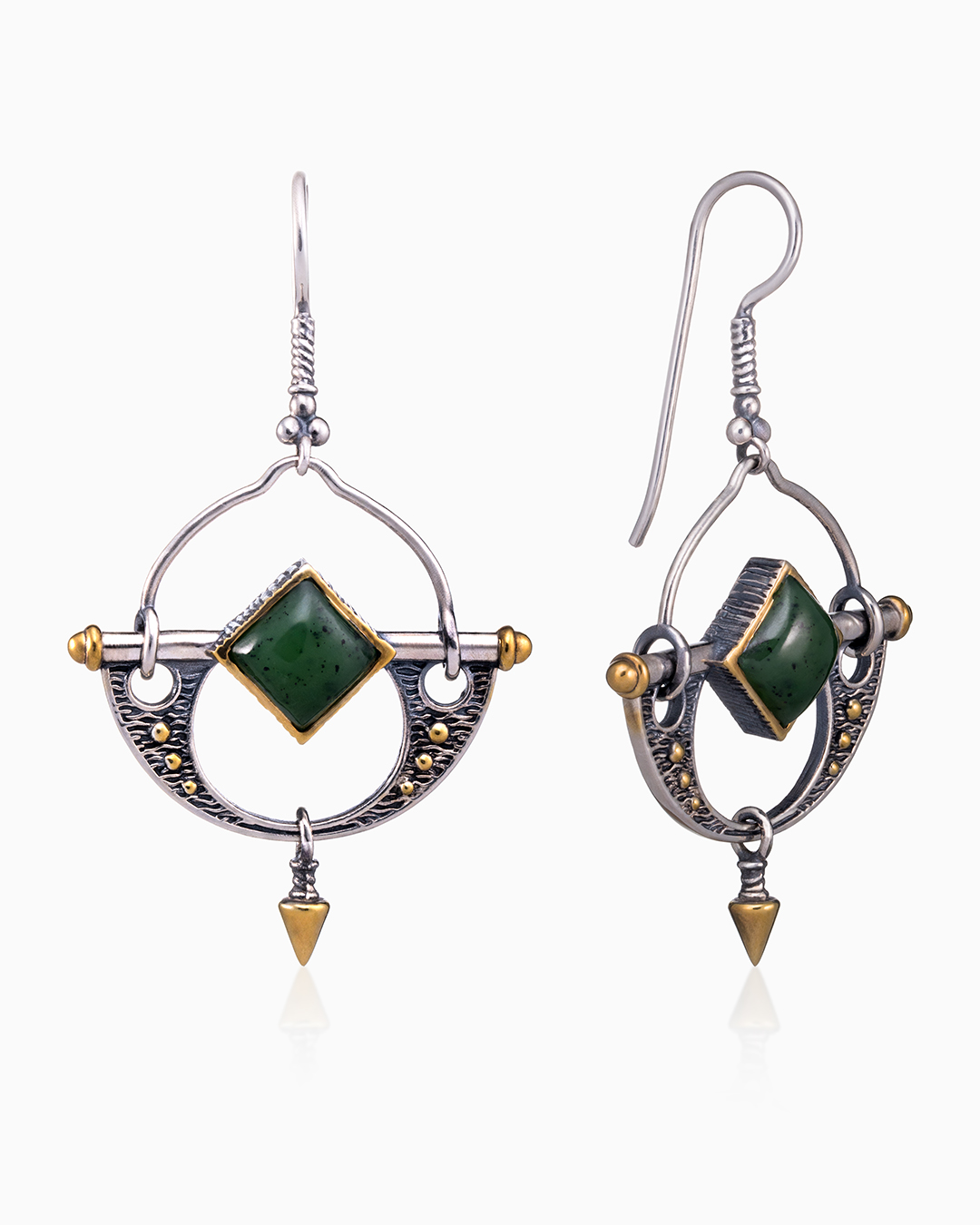 Серьги из серебра с камнем Нефрит