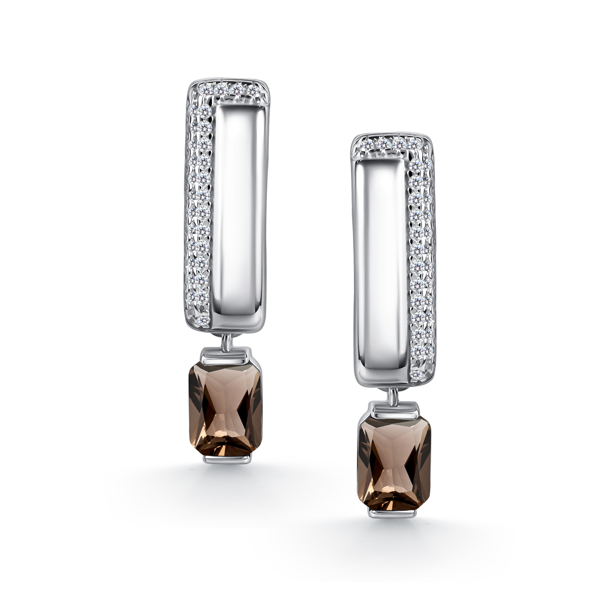 Серьги из серебра с камнем Раухтопаз, Фианит