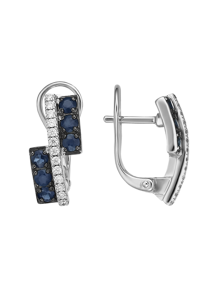 Серьги из серебра с камнем Сапфир, Куб цирконий