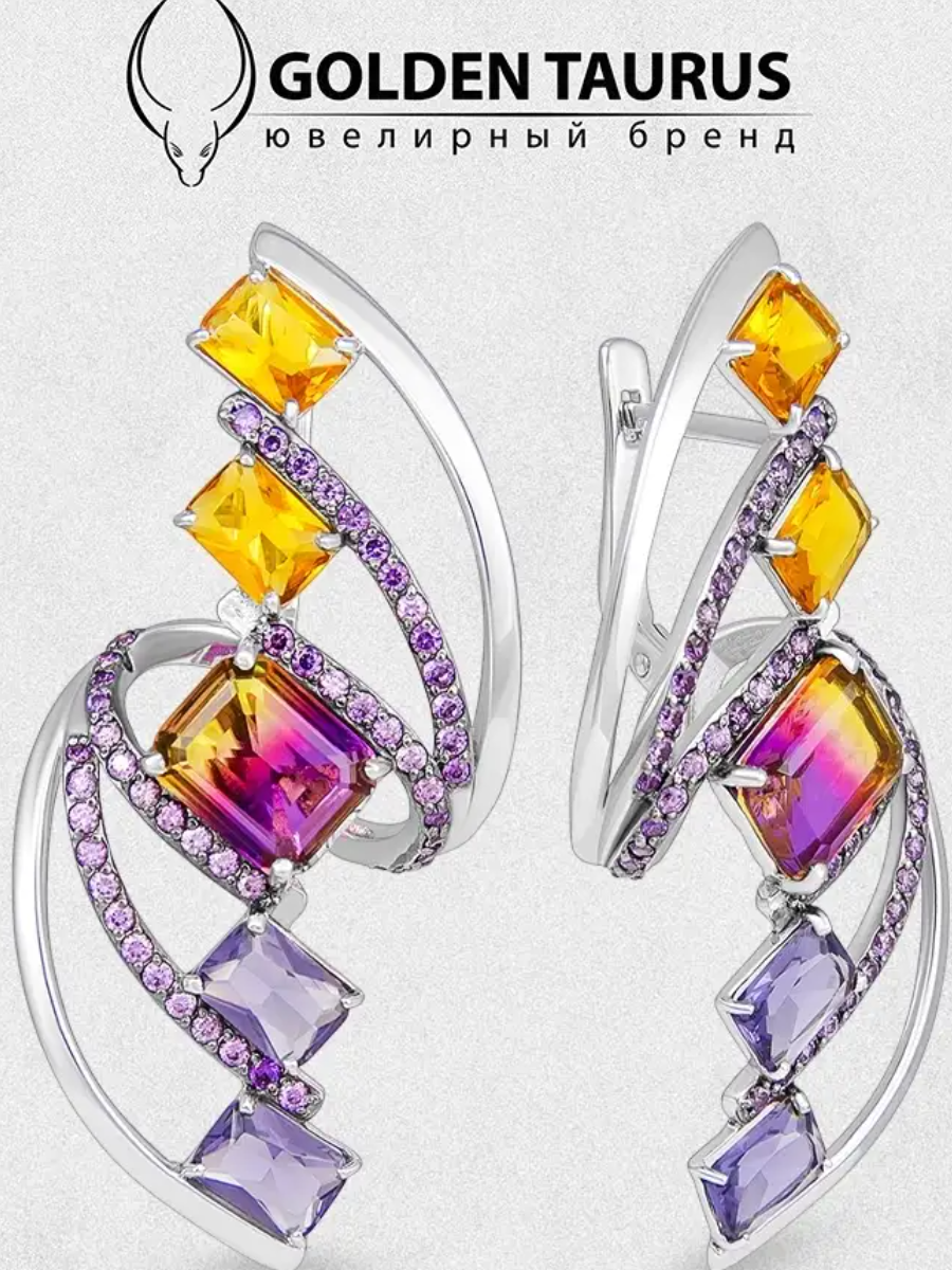 Серьги | Ситалл Аметриновый ,Ситалл Цитриновый ,Ситалл Аметистовый |