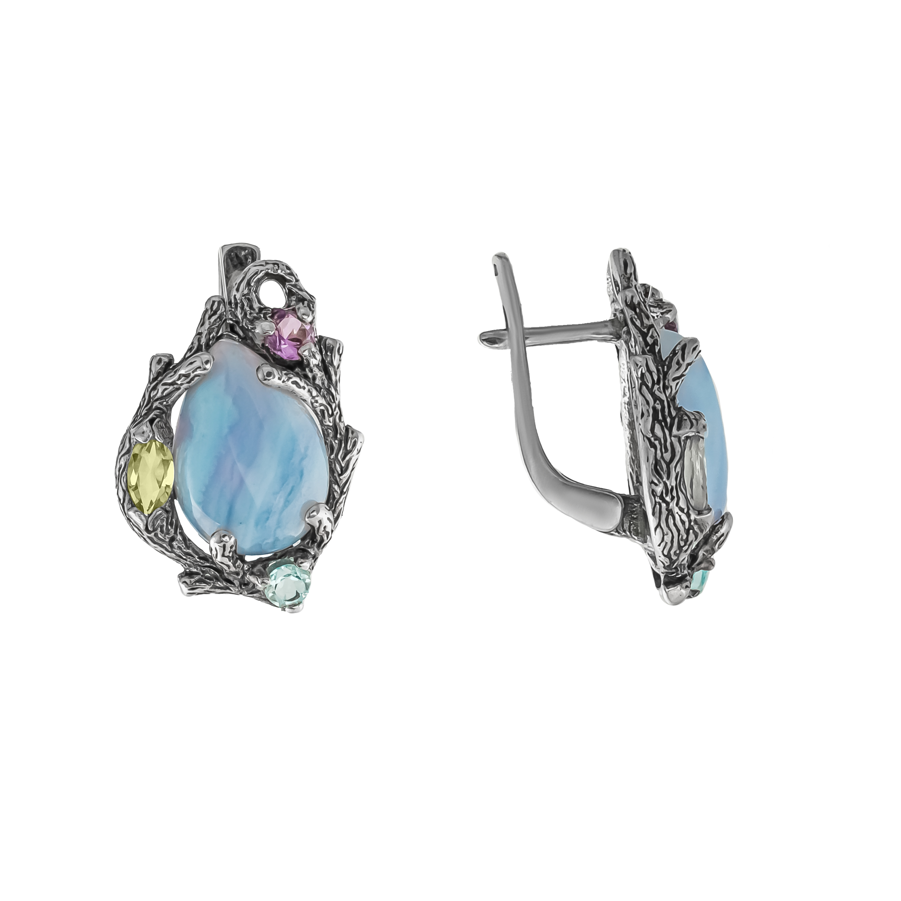 Серьги из серебра с камнем Топаз, аметист, Агат, Кварц