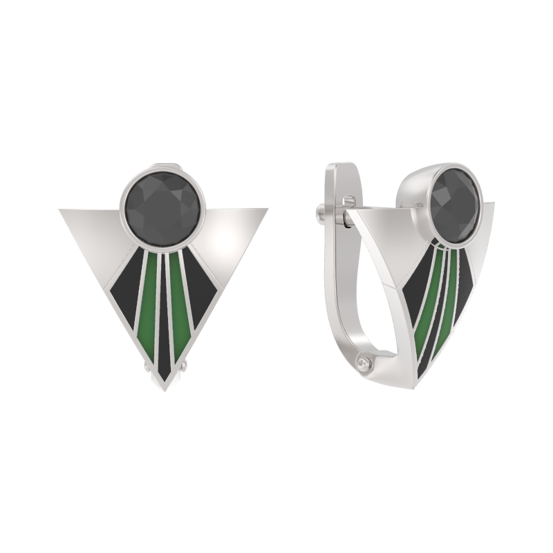 Серьги из серебра с камнем вставками эмали, Шпинель