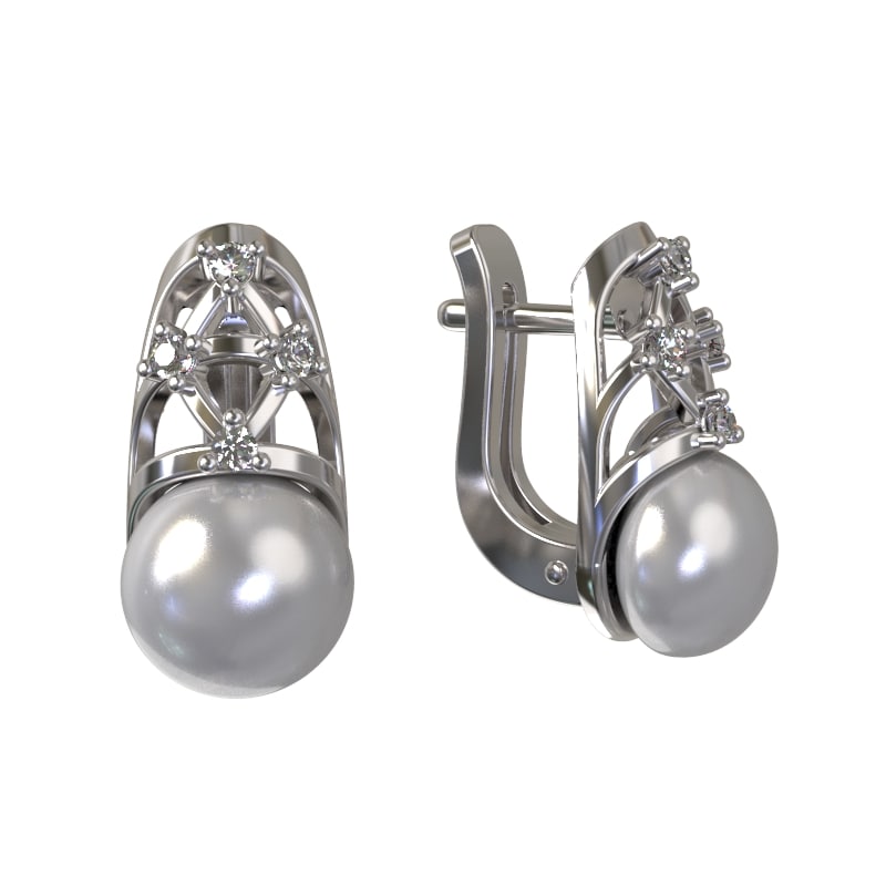 Серьги из серебра с камнем Жемчуг, Фианит