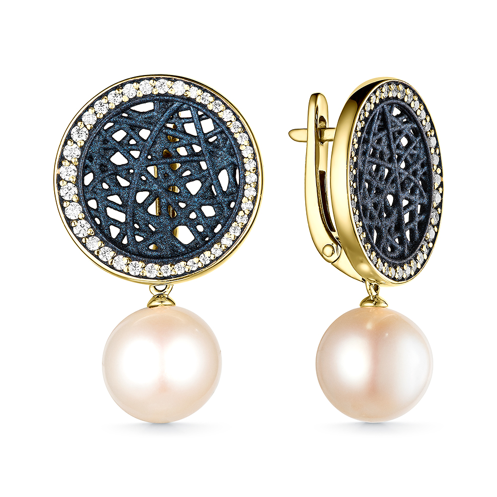 Серьги | Жемчуг ,Фианит ,Эмаль Черный |
