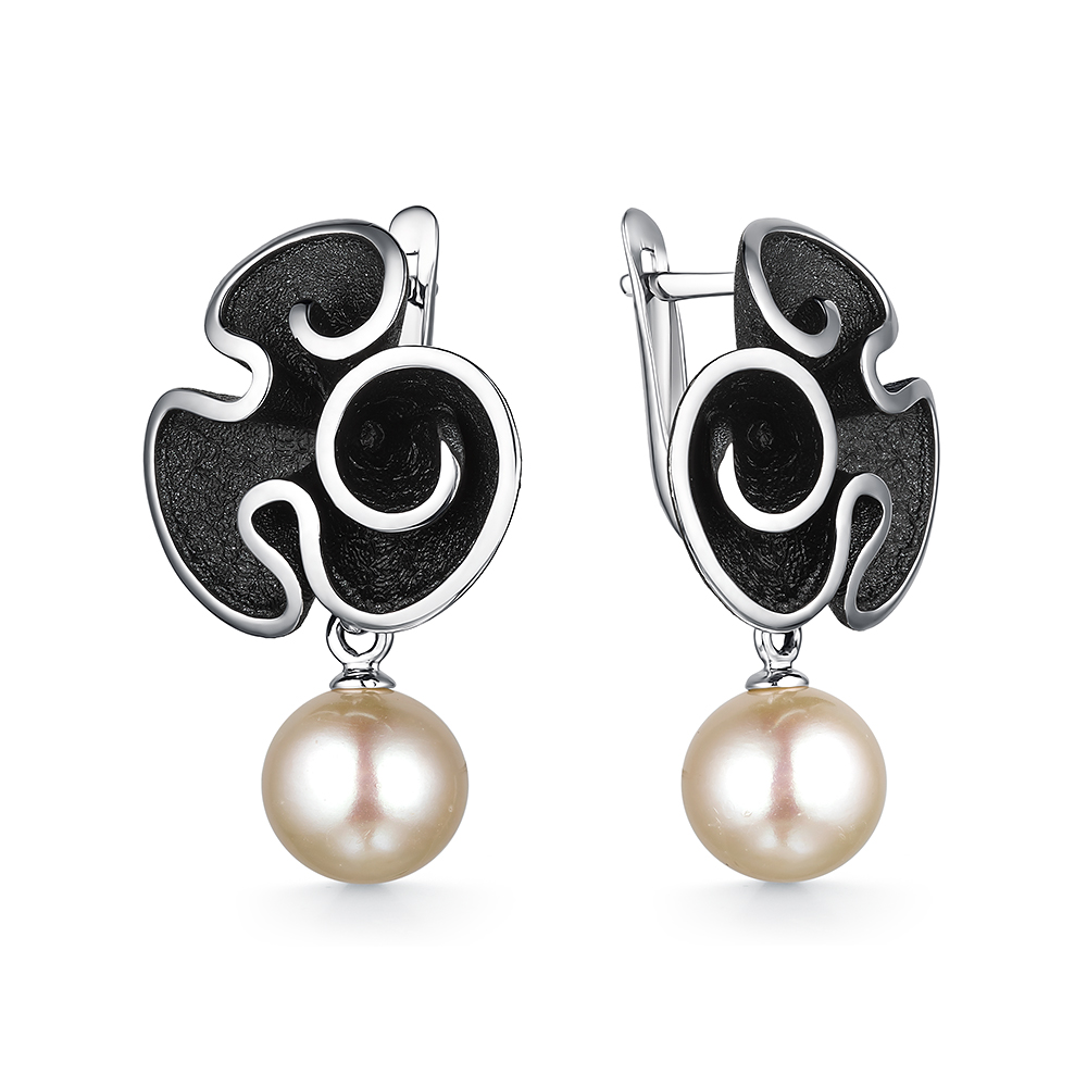 Серьги из серебра с камнем Жемчуг, вставками эмали